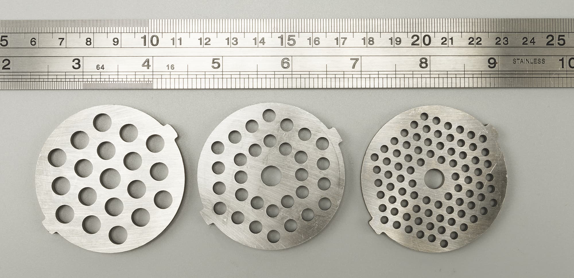 Размер отверстий в решетках, согласно нашим измерениям: 7, 4 и 3 мм.