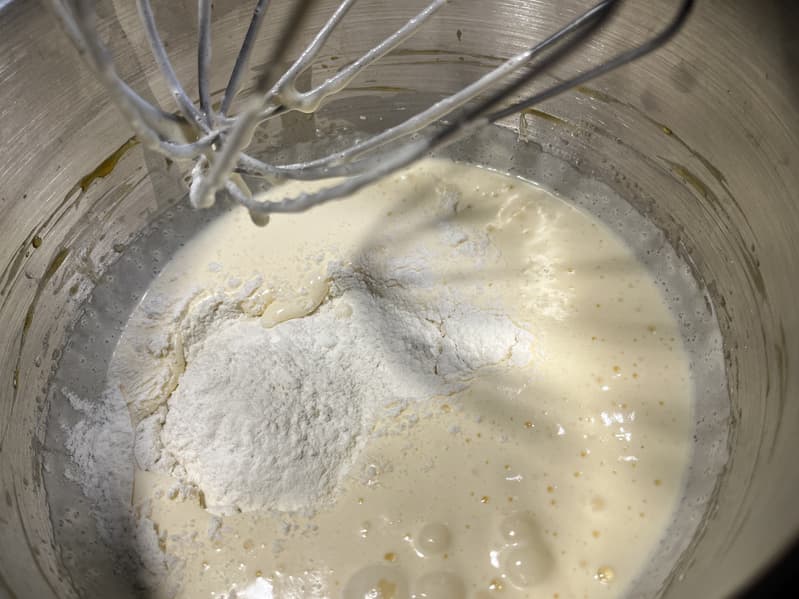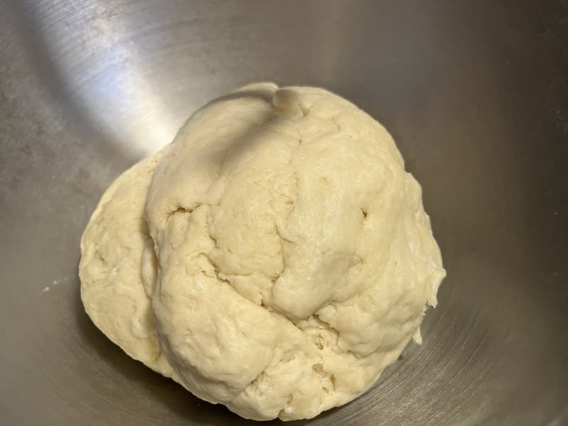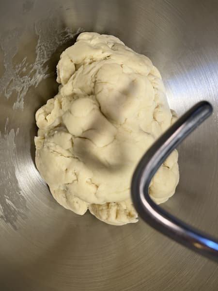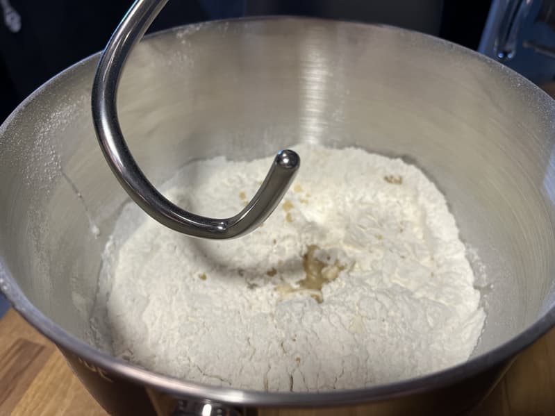 Тесто получилось очень тугим, и тестомес то и дело подпрыгивал, прикладывая много сил, чтобы хорошо его замешать. Планетарному миксеру понадобилось почти 10 минут, чтобы добиться однородности.