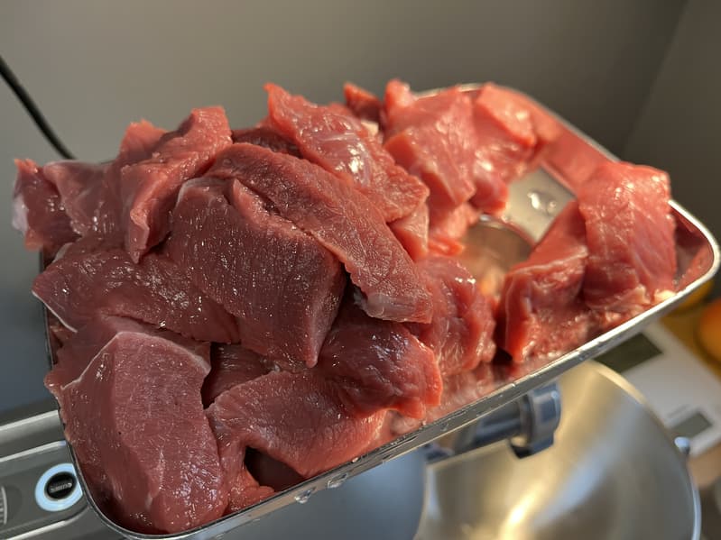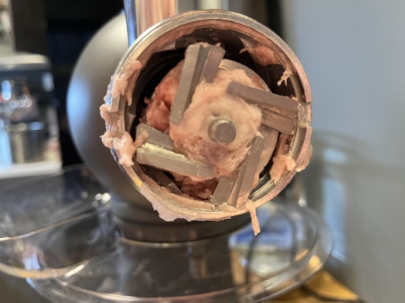 Мясо прошло быстро и легко, но на нож намоталось небольшое количество прожилок и около 15 г мяса осталось непереработанным.