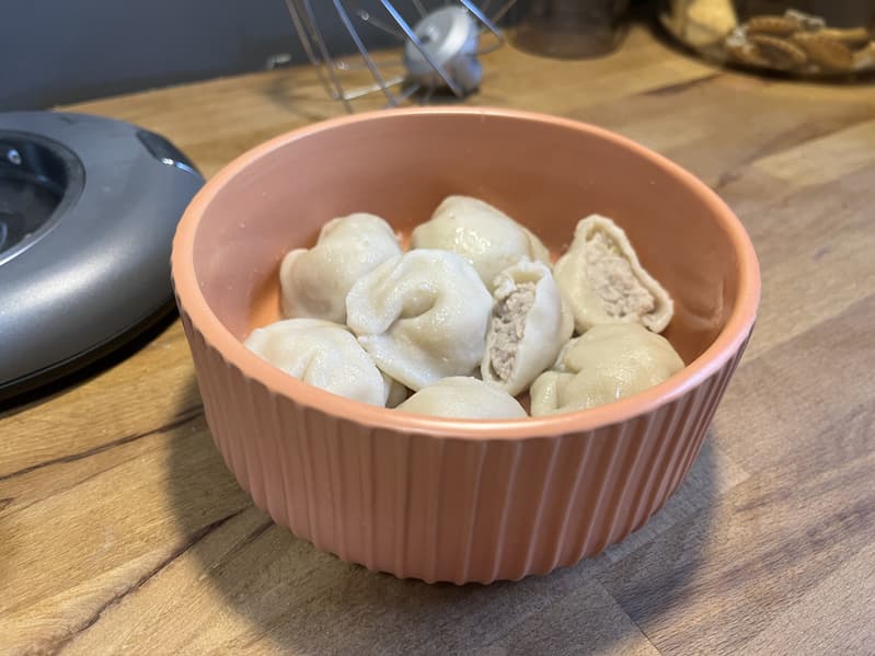 Мы сварили первую порцию свежих пельменей и можем резюмировать, что тесто с начинкой получились отличными. Тесто достаточно тонкое, но плотное, как и должно быть у пельменей, а начинка сочная и однородная.
