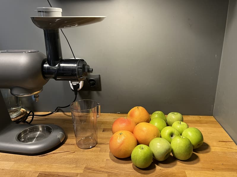 Единственным сомнительным дополнением к устройству мы считаем соковыжималку. Мы выяснили, что она не подходит для плотных яблок (хотя производитель указывает яблоки как допустимый продукт) и более твердых продуктов. Без проблем она справится с более мягкими фруктами и овощами. И это обязательно стоит учитывать, если в приборе помимо прочего приглянулась такая опция.