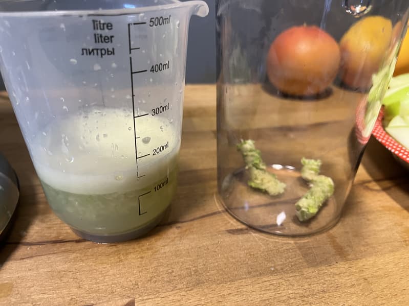 Итоговый результат добытого нами сока составил 540 г, жмыха — 146 г.