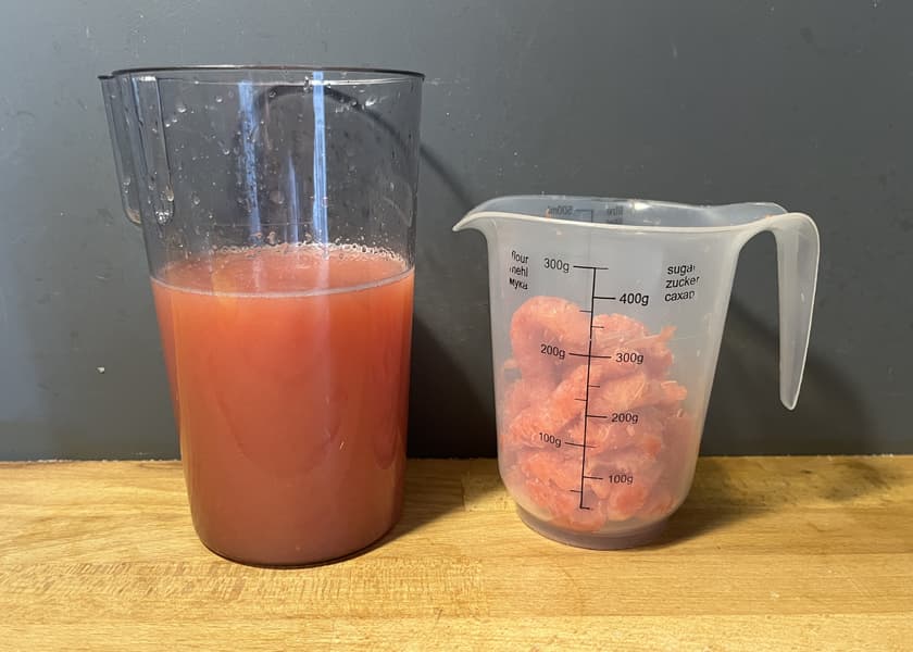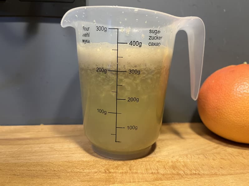 Получается, килограмм грейпфрутов был бы отжат за 2 минуты 49 секунд, что является хорошим результатом для шнековой соковыжималки.