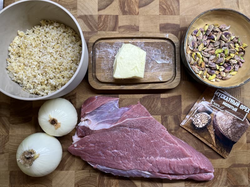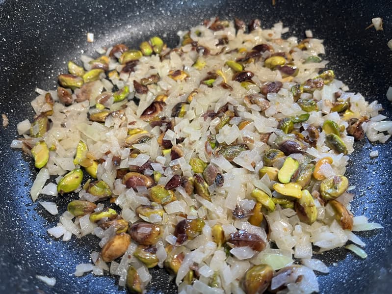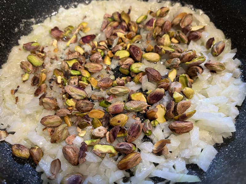 И обжарили лук вместе с фисташками на сливочном масле.
