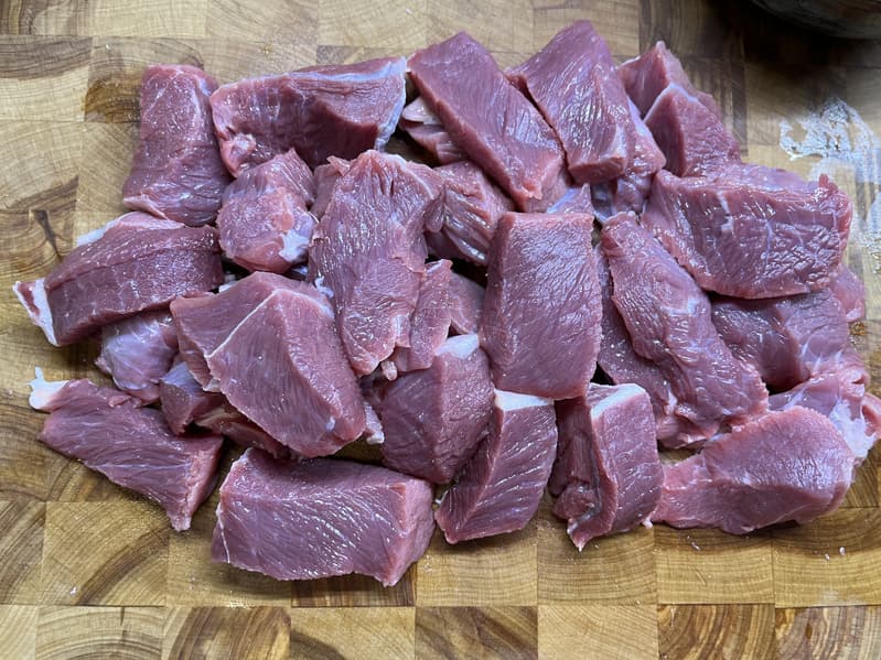 Порезали мясо на небольшие кусочки.