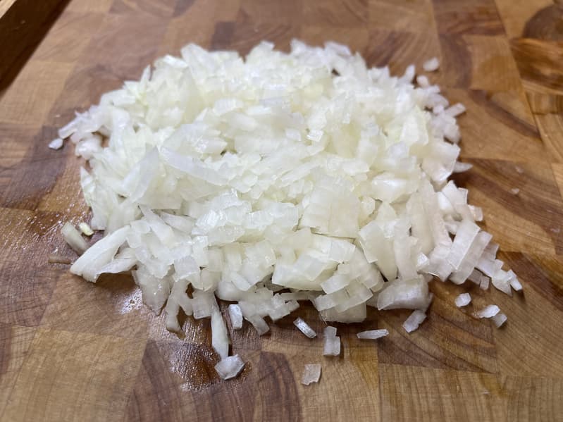 Мелко нарезали вторую луковицу.