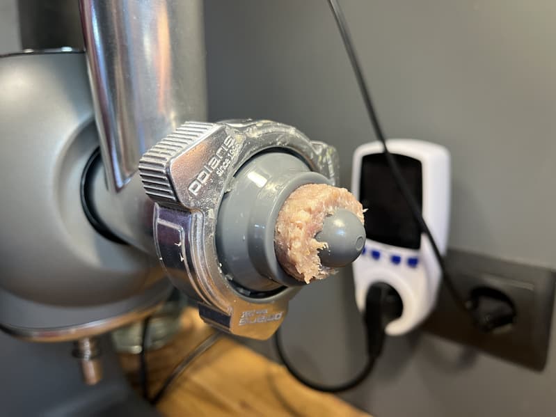 Нам очень понравилось пользоваться мясорубкой — фарш получается легко и очень быстро.