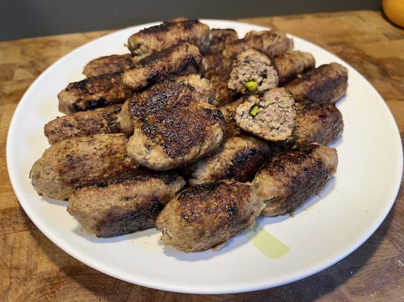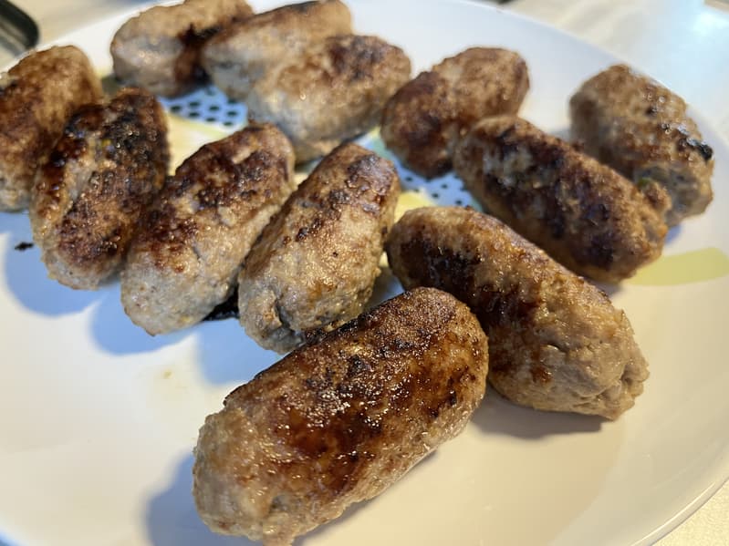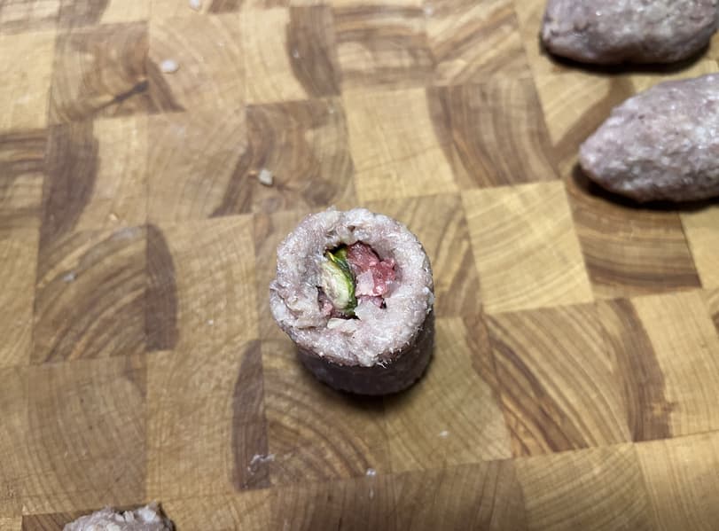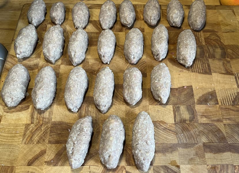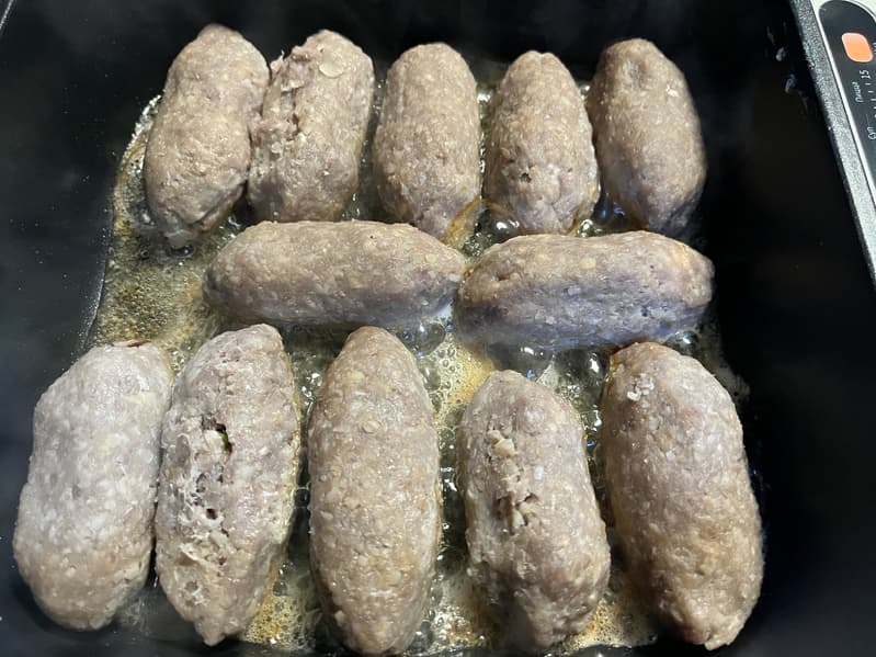 С помощью вилки отреза́ли выходящую из мясорубку оболочку и начиняли ее подготовленной начинкой. После чего соединяли края по концам кеббе, чтобы они слиплись.