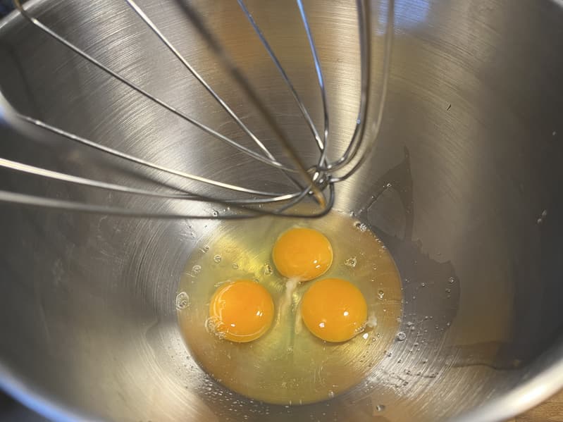 Для начала мы взбили 3 яйца в пышную пену. Это заняло буквально 1,5 минуты.