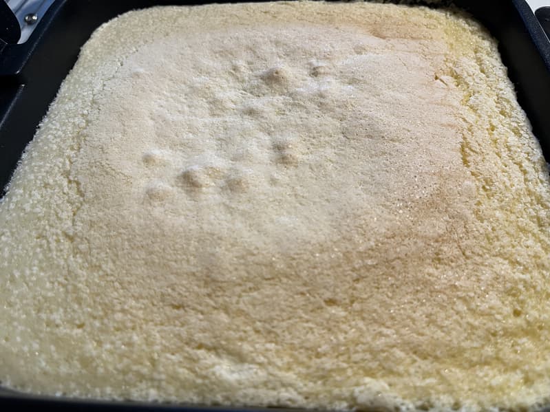 Смазали емкость для запекания сливочным маслом и отправили бисквит подниматься.