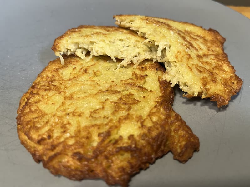 Снаружи драники получились хрустящими, а внутри — сочными.