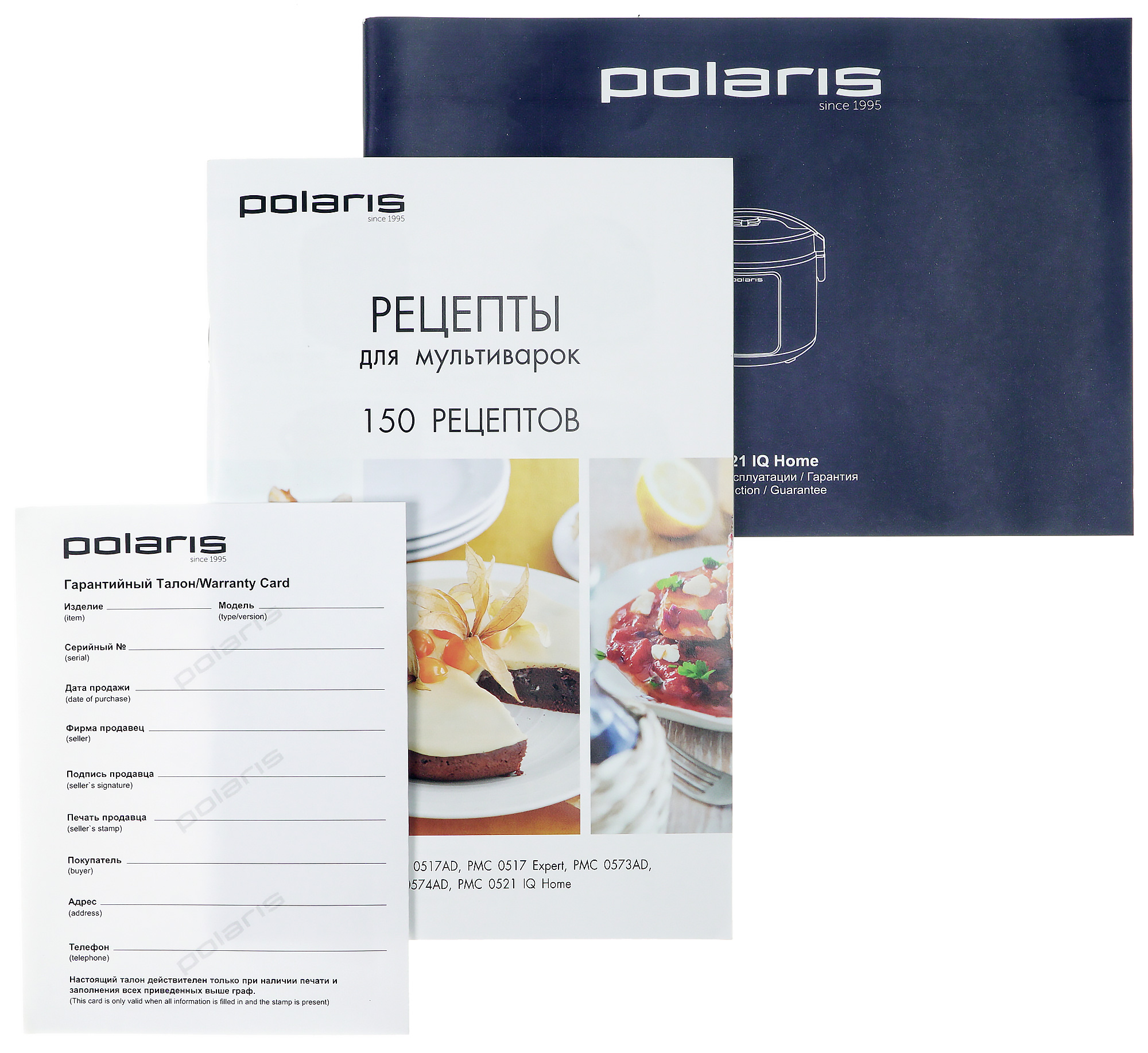 В комплекте к прибору прилагается книга рецептов, гарантийный талон, рекламная книжка приборов системы Polaris IQ Home и довольно объемная инструкция на 3 языках — русском, украинском и одном из тюркской группы.