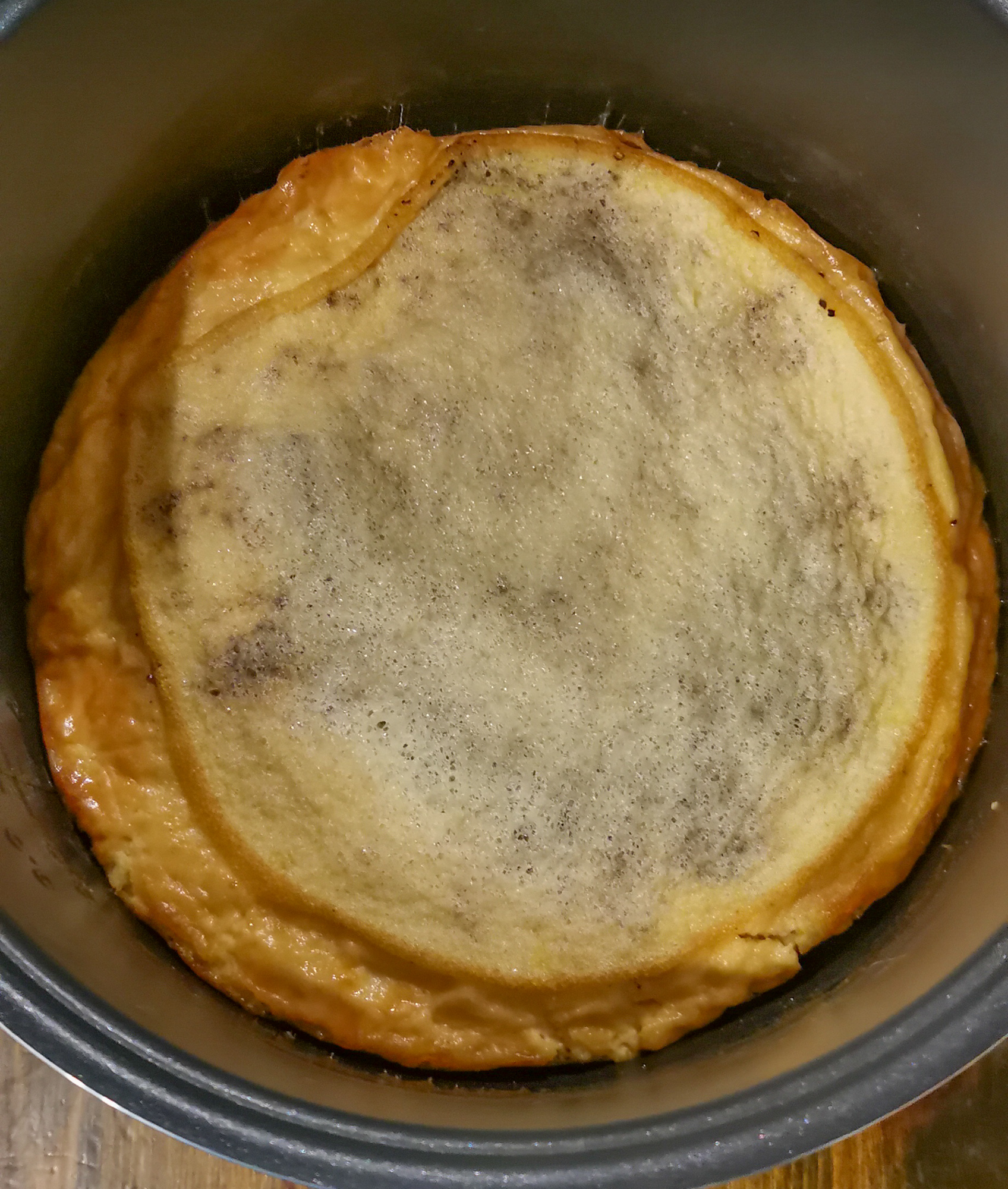Вынули емкость из мультиварки, оставили охлаждаться при комнатной температуре. Через час аккуратно переложили пирог на блюдо и поставили его в холодильник на ночь.