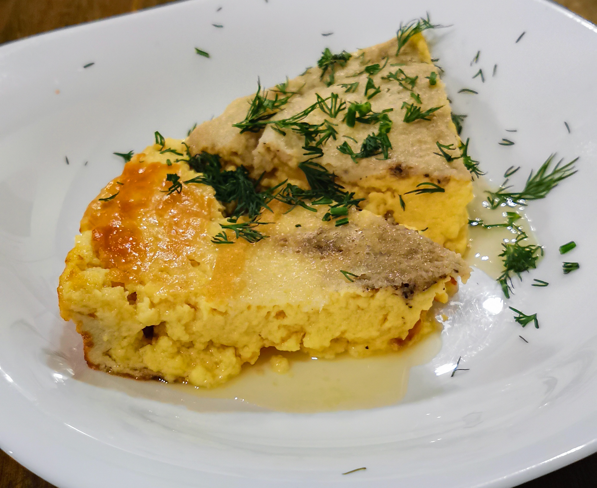 Через час аккуратно переложили запеканку-суфле из формы на блюдо, разрезали на порционные куски.