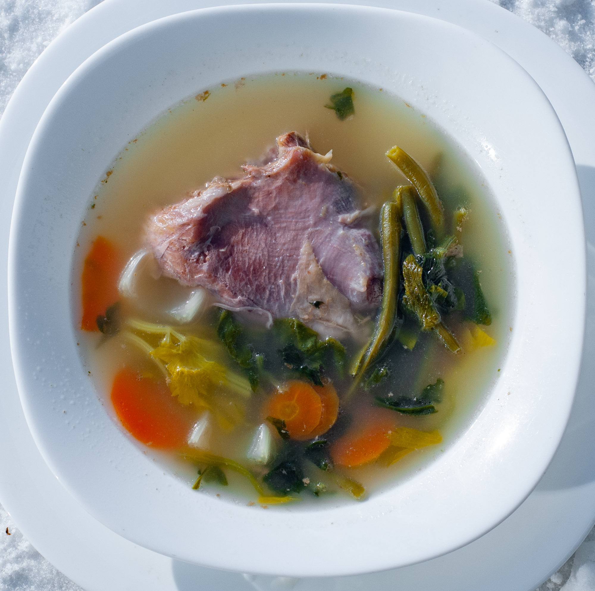 Для супа мы взяли ногу индейки и варили ее на программе «суп» в течении 2 часов. После полной готовности мяса положили в бульон морковь, сельдерей и зеленую фасоль. Поставили вариться не меняя программу еще на 20 минут. За 3-5 минут до готовности положили в суп шпинат.