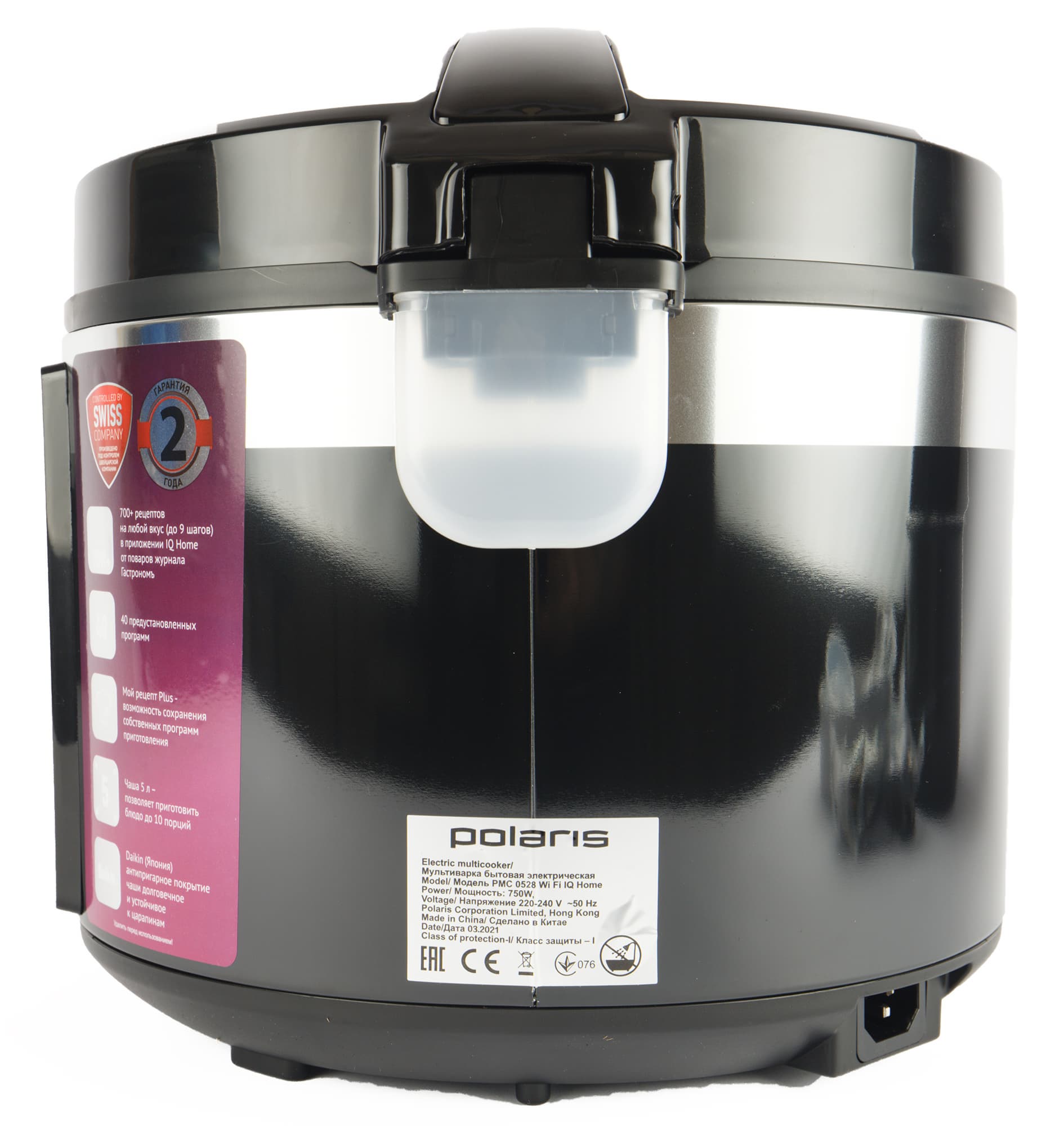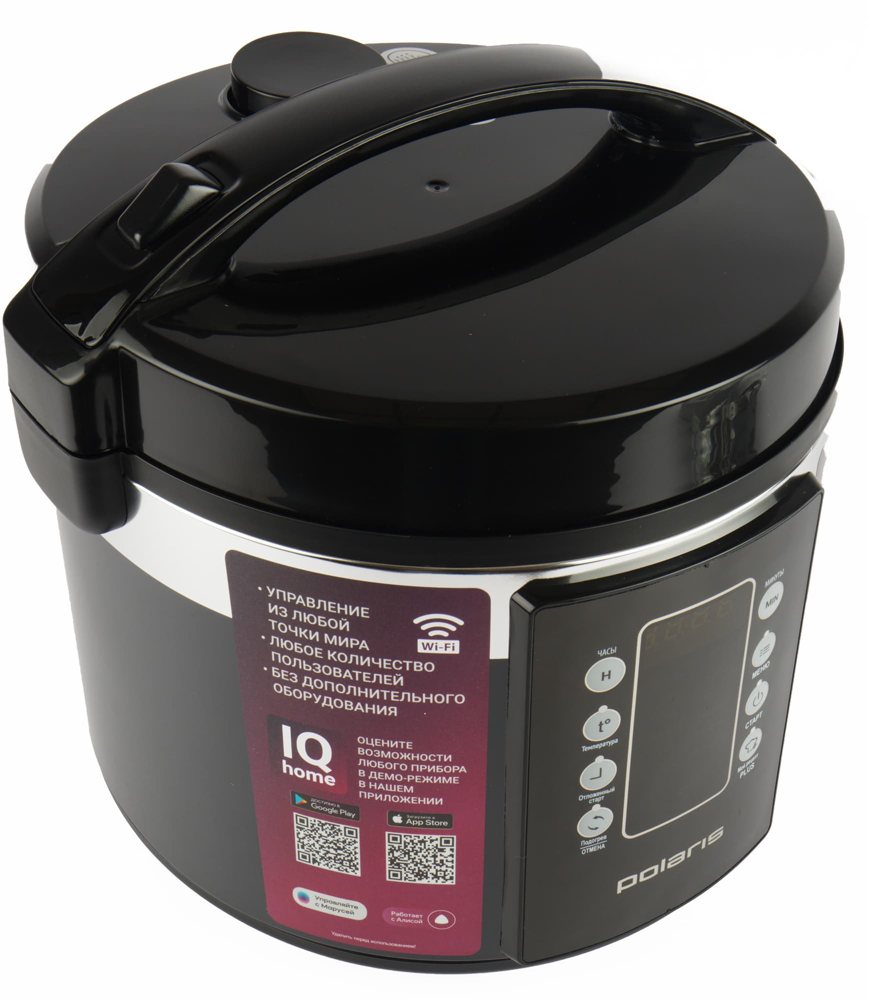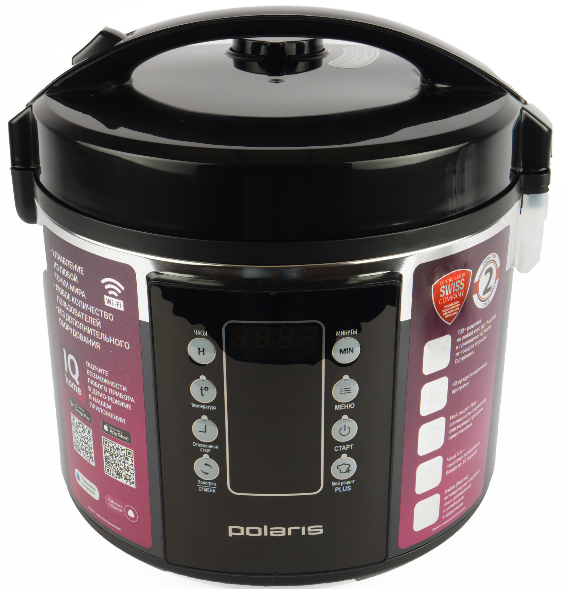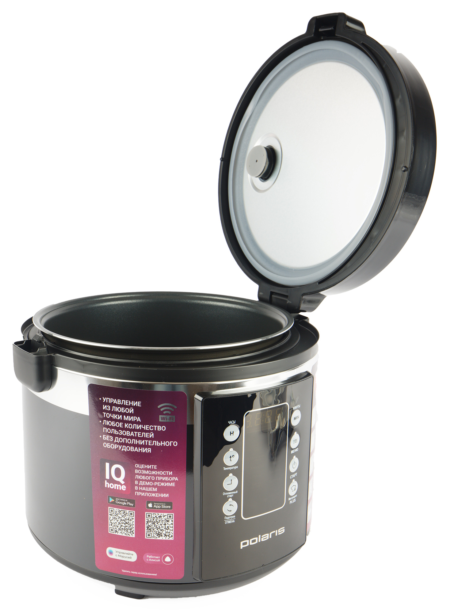 Мультиварка Polaris PMC 0528 Wi-Fi IQ Home — типичный представитель современных бюджетных моделей этого типа кухонной техники. Конструкция ее довольно стандартна, имеется большой набор автоматических программ приготовления (аж целых 40 штук), а также есть возможность управления посредством мобильного приложения, что, в свою очередь, открывает доступ к обширной базе рецептов и дополнительным режимам: заявлено 300 режимов приготовления в формате «Мой рецепт Plus», включающем до 9 последовательных шагов.