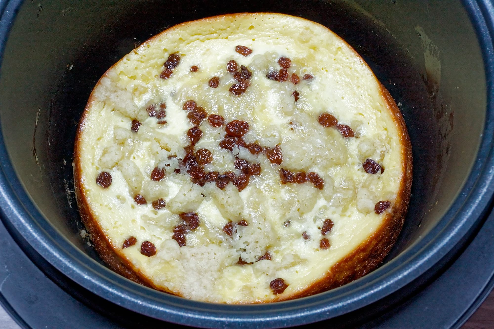 Готовится ватрушка на режиме «Выпечка» 1 час 20 минут. Сначала в чашу нужно выложить 2/3 мучной крошки, затем — творог, сверху — изюм, а сверху — остаток теста-крошки. После завершения программы ватрушке нужно дать остыть прямо в чаше.