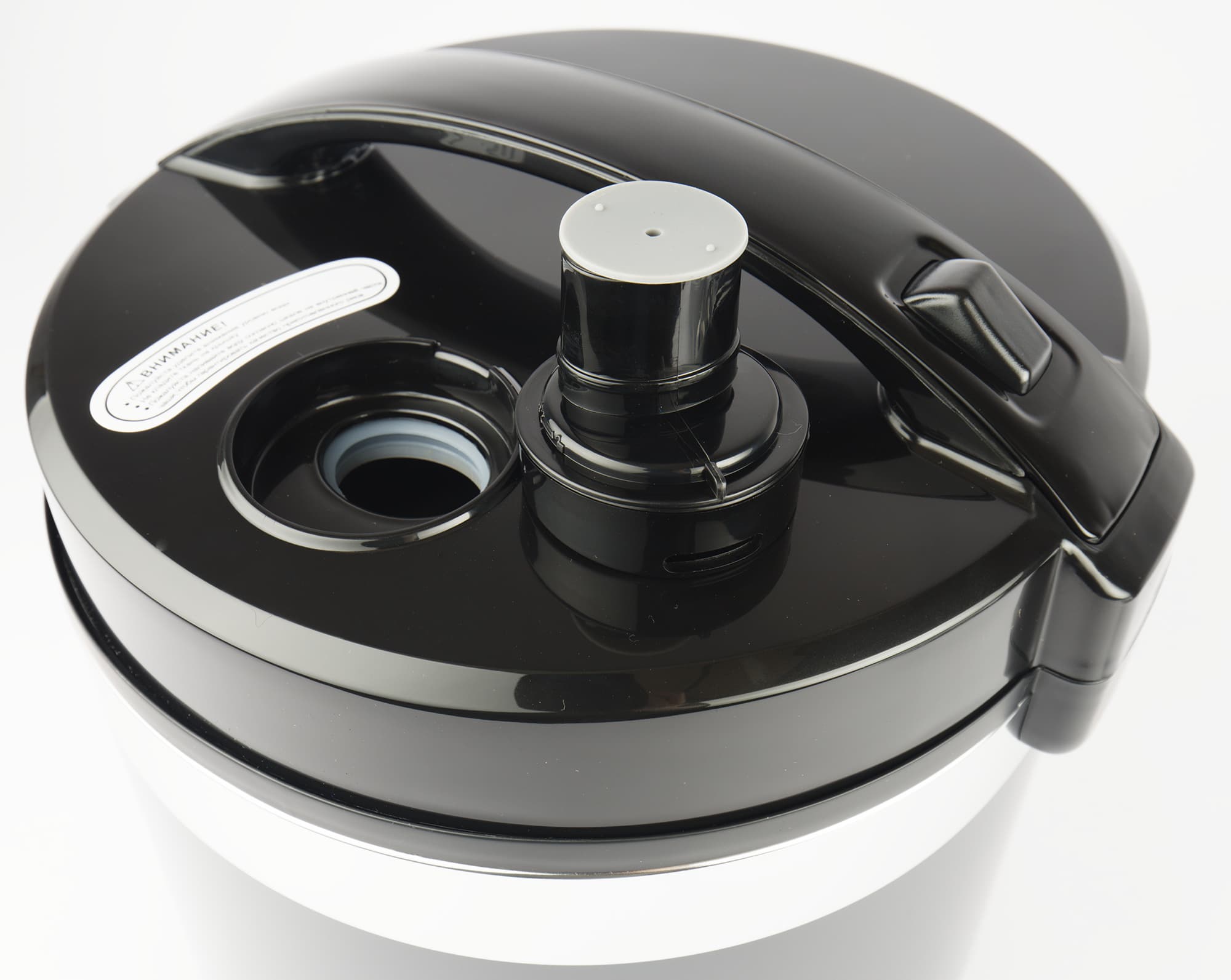 Клапан для выпуска пара снимается и устанавливается с легким нажатием, после чего надежно фиксируется в резиновом уплотнителе. Сам клапан разборный, что облегчает его очистку.
