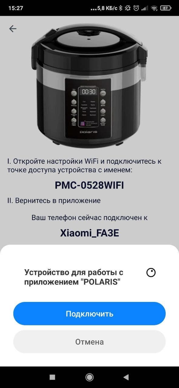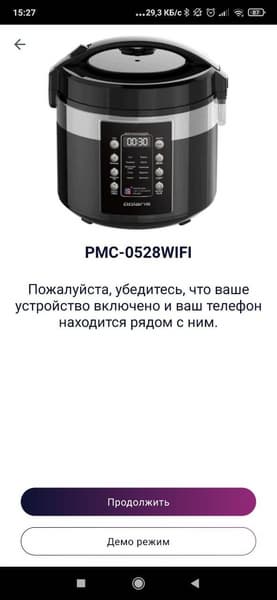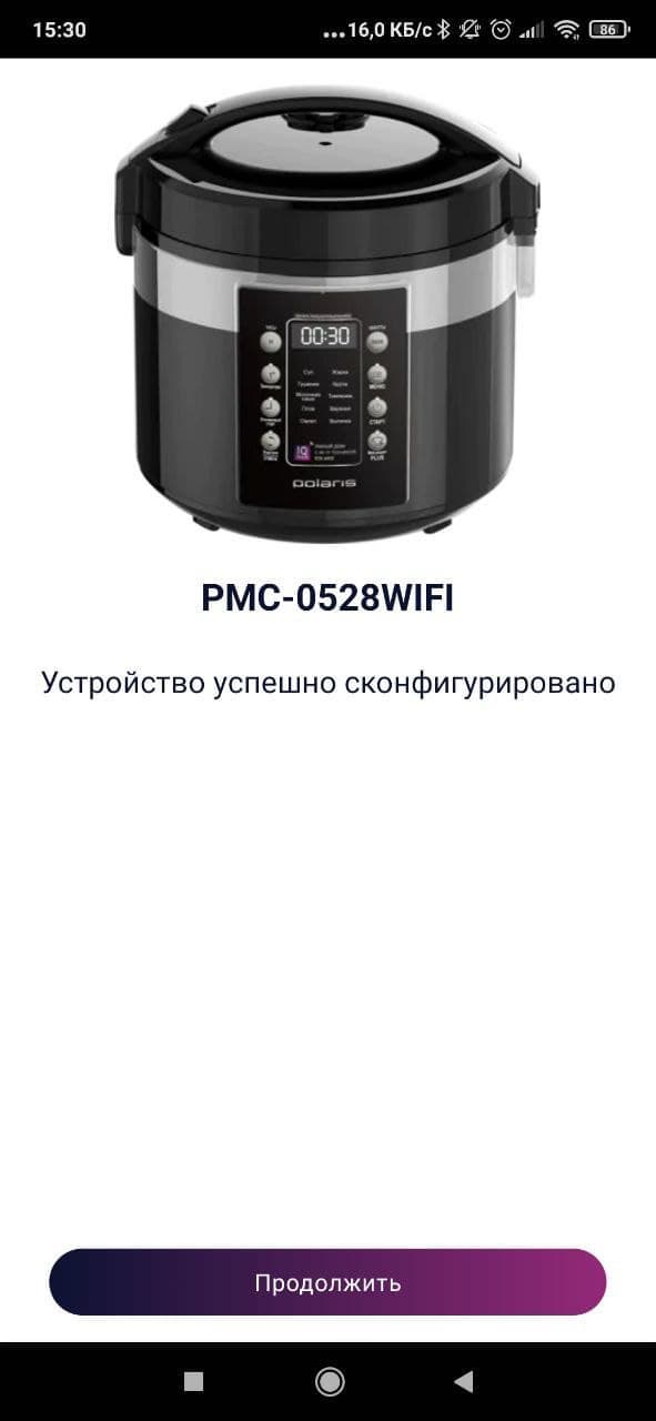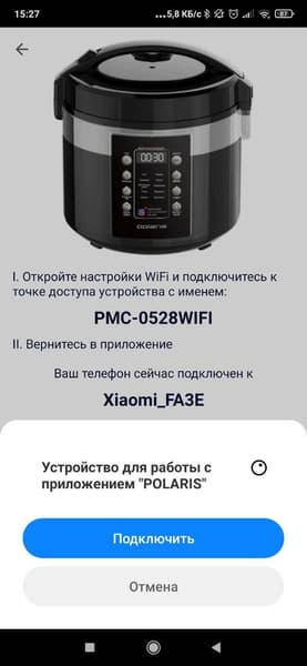 Настройка мультиварки осуществляется традиционным способом — находим прибор в списке, подключаемся к Wi-Fi-сети прибора, передаем данные о настройках подключения (к домашнему роутеру) — готово.