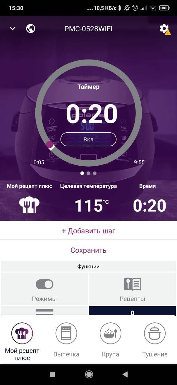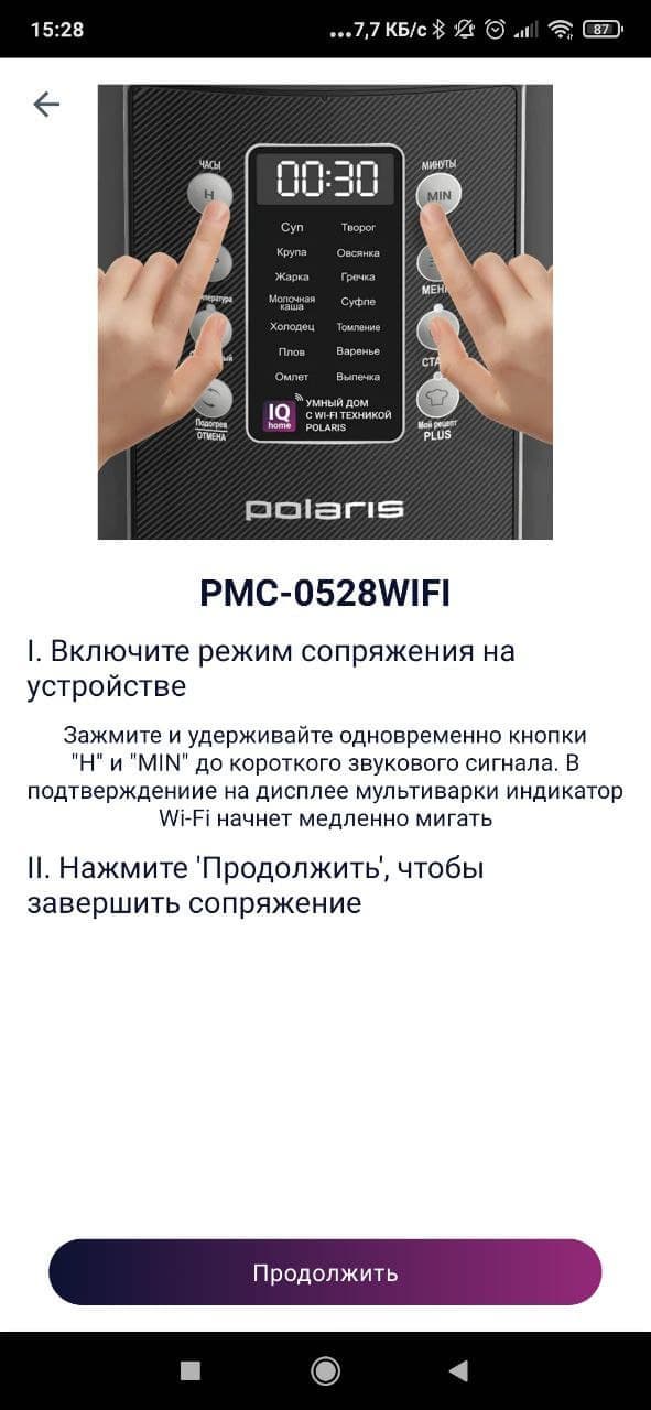 Для управления мультиваркой с помощью смартфона нужно загрузить специальное приложение Polaris, которое является единым центром для управления всей умной техникой, выпущенной под этим брендом.