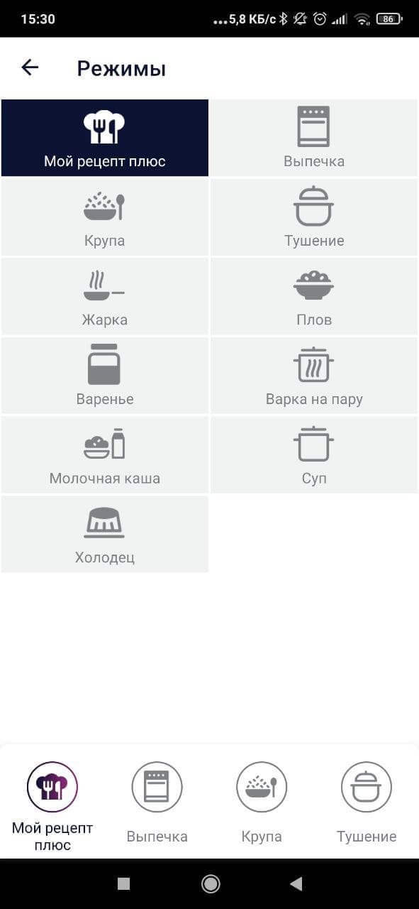 Список доступных команд довольно обширен (его вы можете увидеть на скриншотах ниже). Если не рассматривать работу с собственноручно созданными режимами («Мой рецепт Plus»), то голосовые команды позволяют выполнить практически любую из стандартных задач — выбрать и запустить нужную программу, включить и отключить поддержание тепла, увеличить или уменьшить температуру в процессе приготовления. Удобно.