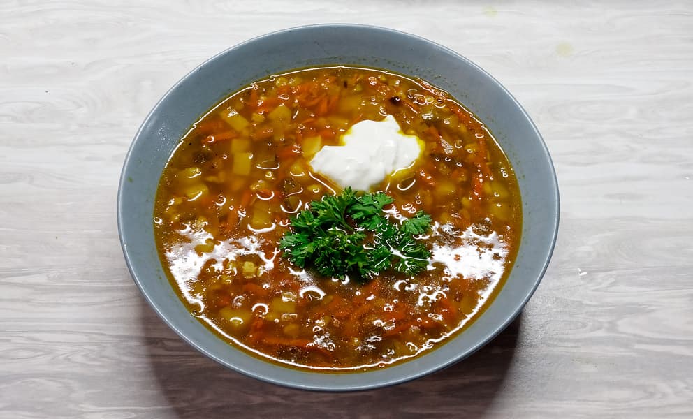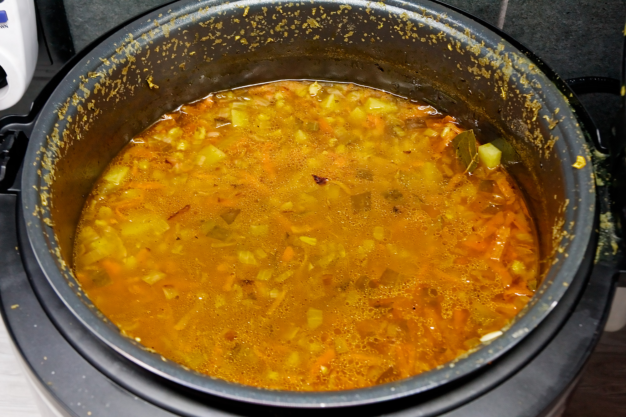 Результат нас более чем порадовал даже несмотря на то, что в процессе приготовления наш суп закипел и мелкие частицы еды и специй налипли и на чашу, и на внутреннюю сторону крышки.