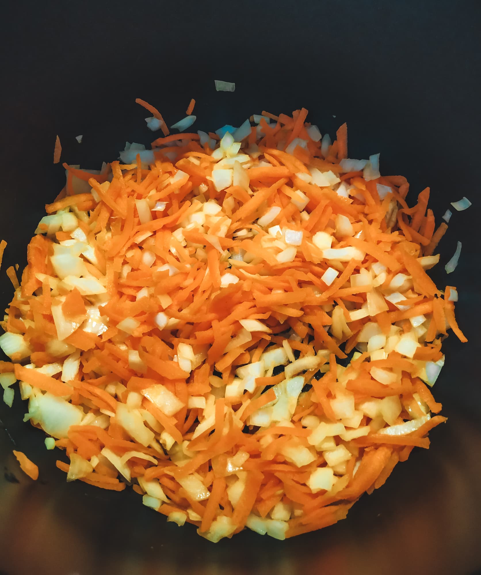 Все-таки сырые корнеплоды класть в суп бессмысленно: весь аромат пропадет. Так что на пассерование лука и моркови в режиме «Жарка» время пришлось потратить.