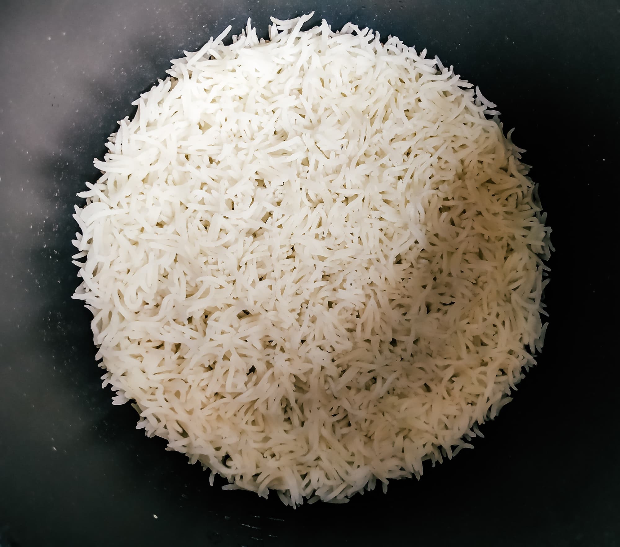 Вода выкипела полностью, рис не прилип к стенкам и не слипся в ком.