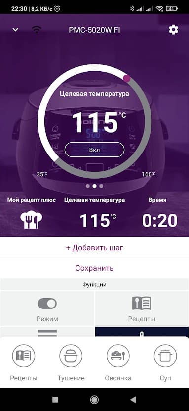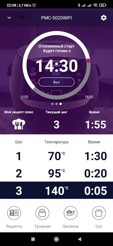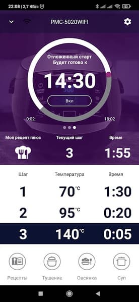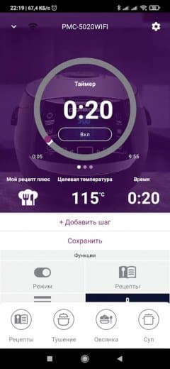 Если вы решили не пользоваться автоматическими режимами, а задать свои параметры приготовления, в приложении очень легко запрограммировать каждый этап.