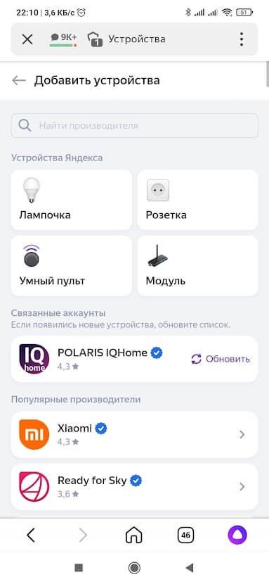 Для общительных людей предусмотрено управление мультиваркой через «Алису». Достаточно войти в свой аккаунт на «Яндексе», во вкладке «Добавить устройства» найти Polaris, а дальше искусственный интеллект сделает все сам, вам останется только выбрать комнату, в которой будет работать прибор.