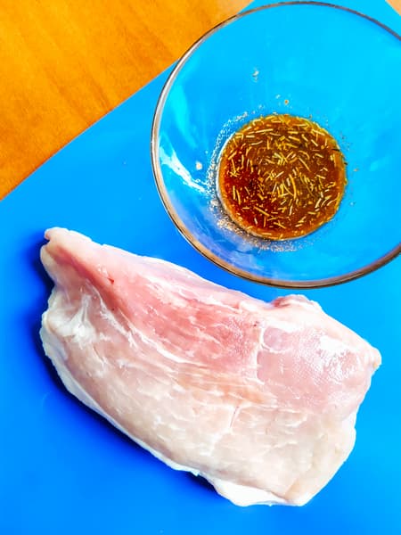 Этот рецепт мы нашли в приложении IQ Home. Кусочек свиного окорока обмазали смесью из оливкового масла, соли, паприки, сушеного чеснока и тимьяна.