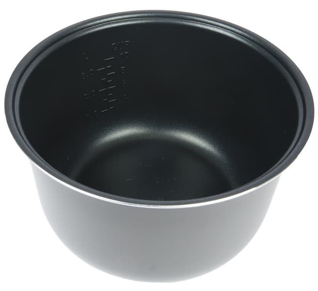 На него устанавливается пятилитровая чаша без ручек. Правда, полезный объем — 3,5 литра, или 10 чашек, о чем нам сообщают риски на стенке. Весит чаша 500 граммов и хлипкой не кажется, антипригарное покрытие гладкое.