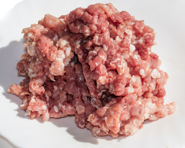 За основу был взят оригинальный рецепт из руководства по эксплуатации. И именно в этом испытании в дело вступил внутренний творческий узбек, традиционно испортивший хорошую, в целом, идею. Для начала рекомендуемая баранина была заменена на жирную свинину, а оболочка для кеббе сделана из говядины (той самой, третьего сорта) и лопаточной части свинины. Затем фарш был пропущен через мясорубку не три, как рекомендуется, раза, а всего два, и то через решетку с максимальным диаметром отверстий. На этапе вымешивания фарша стало ясно, что для данного блюда стоит брать мясо сортом повыше, жилок поменьше, за большим диаметром на решетках не гнаться. В результате должна была получиться однородная плотная масса, но из-за невысокого качества продуктов нам не удалось достичь желаемого.