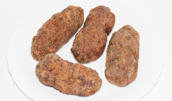 В общем, из имеющегося мяса оболочка для кеббе получилась неоднородная и рвущаяся при прохождении через насадку. Тем не менее, кеббе были сформованы и пожарены в большом количестве масла.