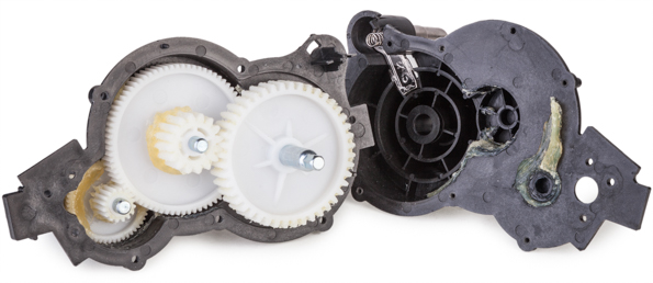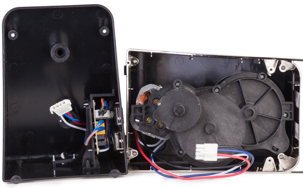 Внутри корпуса расположены моторный блок с редуктором и плата управляющей электроники. Для интересующихся техническими деталями приводим ниже маркировку мотора.