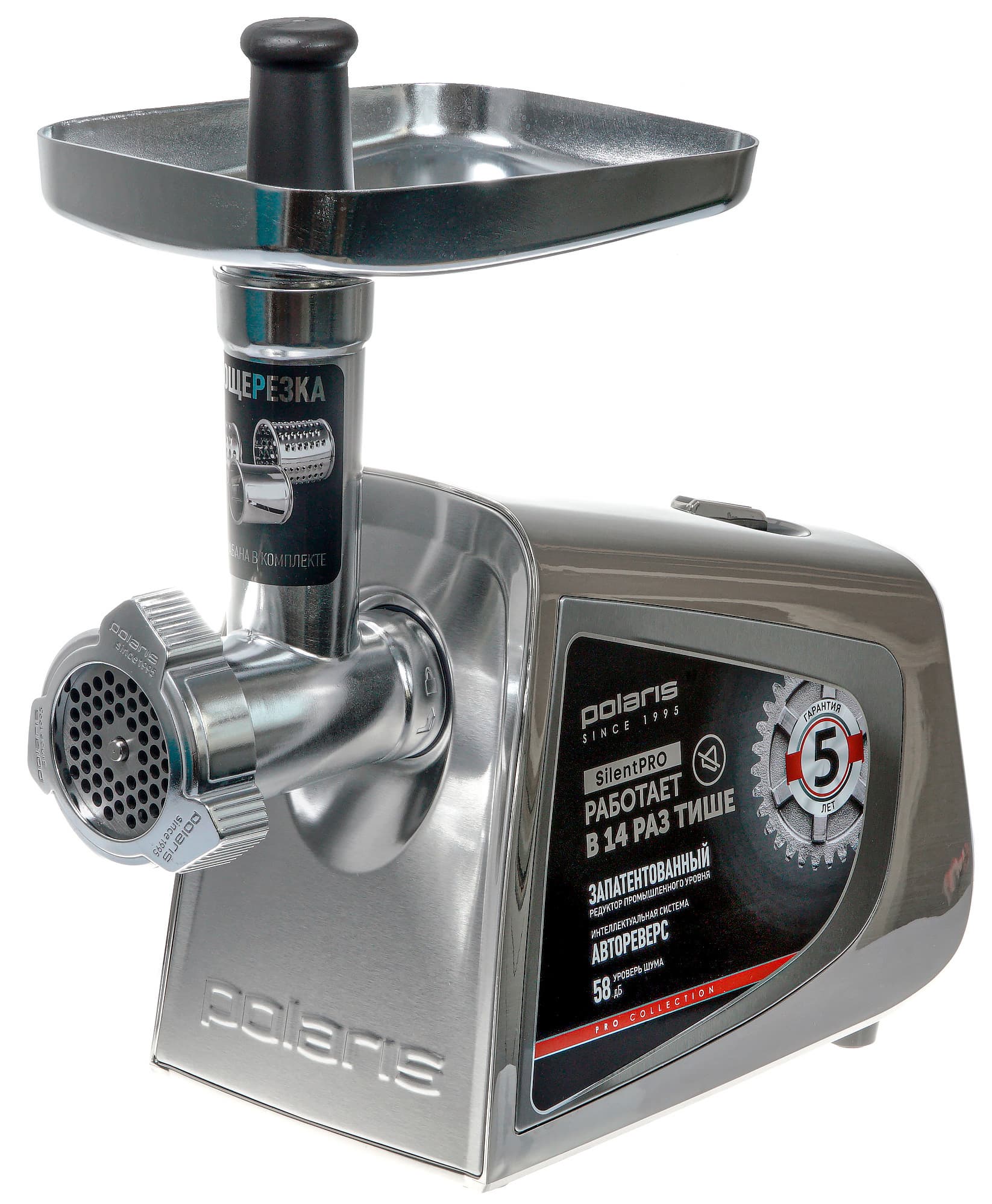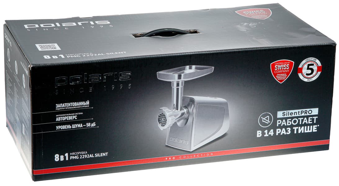 Мы уже собаку съели (в переносном смысле) на тестировании электрических мясорубок, так что по давно выработанному алгоритму проверим сегодня Polaris PMG 2292AL Silent — модель «8 в 1» с пониженным уровнем шума. Да, PMG 2292AL — не только мясорубка, но и шинковка для овощей. Кроме того, Polaris обещает впечатляющую производительность — 2,5 кг/мин, а также невиданную для мясорубок характеристику — тихую работу. Вот и посмотрим.