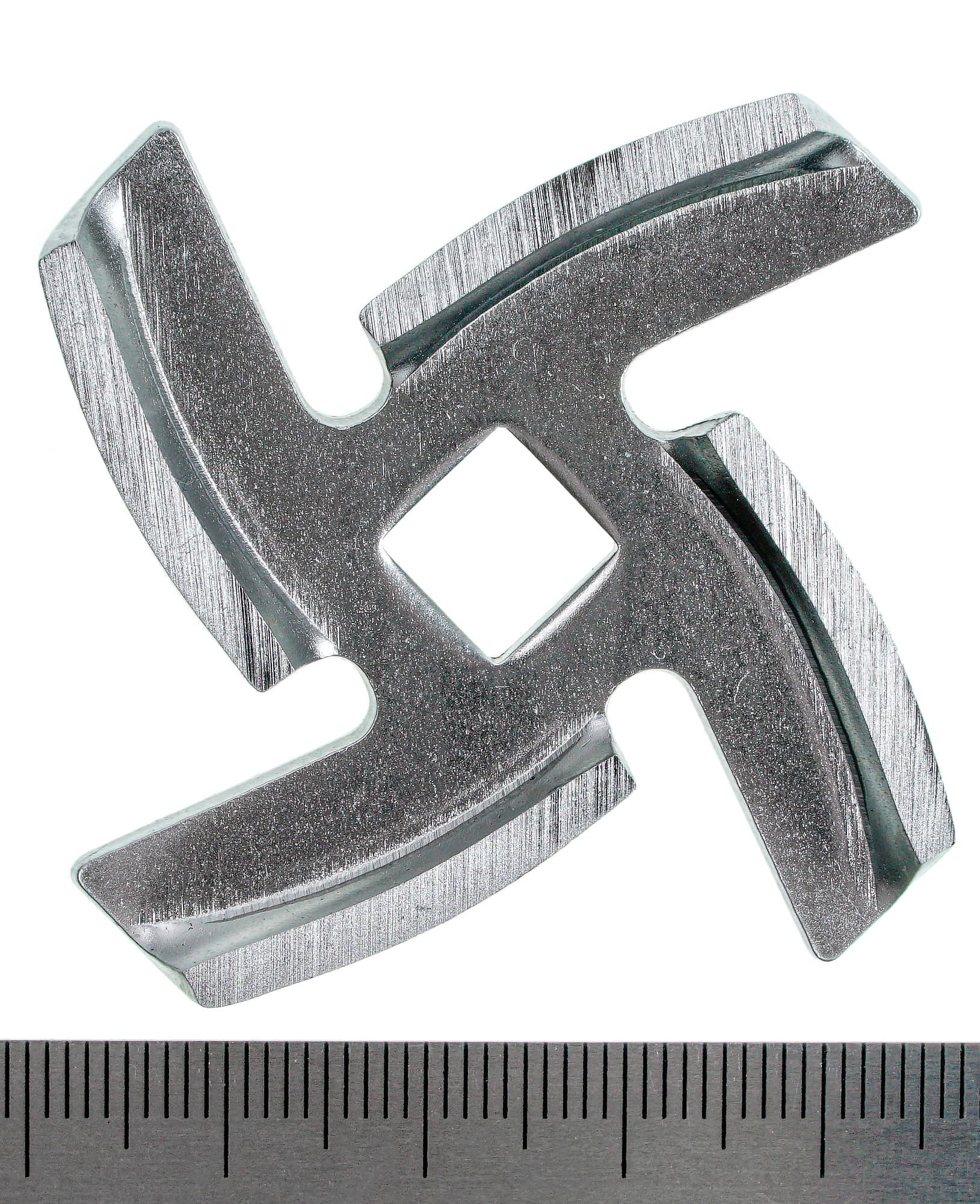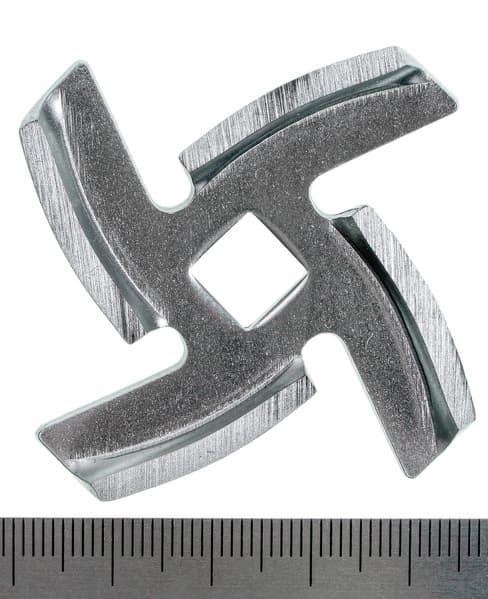 Четырехлопастной нож выполнен из стали и готов к заточкам в будущем.