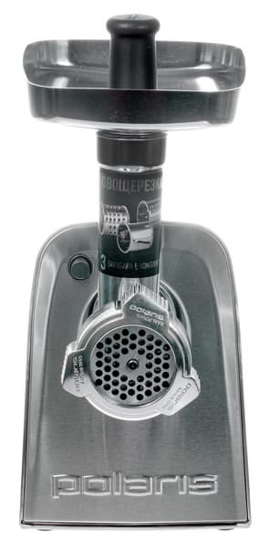 Надо сказать, что включать реверс принудительно не всегда необходимо: PMG 2292AL Silent оснащена функцией «Автореверс». При перегрузке двигателя во время работы из-за наматывания остатков мяса на вал и нож мясорубки она включается автоматически на несколько секунд, что позволяет освободить механизм от блокирующих остатков. Если включение «Автореверса» происходит периодически, необходимо выключить мясорубку и очистить вал, нож и сетку от остатков мяса.