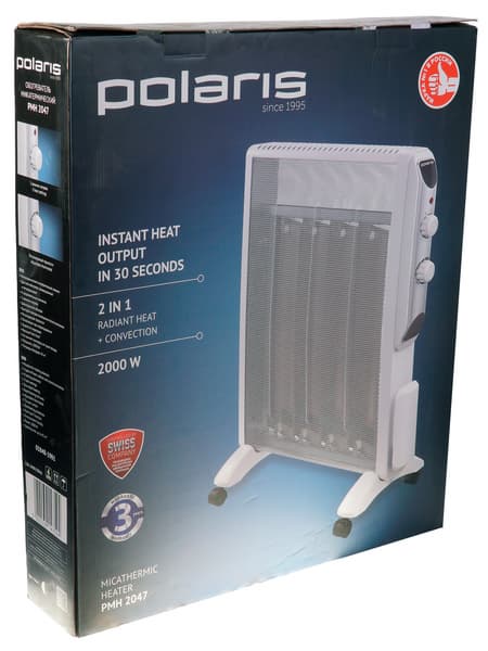 Микатермический обогреватель Polaris PMH 2047 — отличный прибор, удобный и практичный в эксплуатации. Затруднения вызывает разве что привыкание к режиму термостата, а общее впечатление от удобства использования портит длина провода.