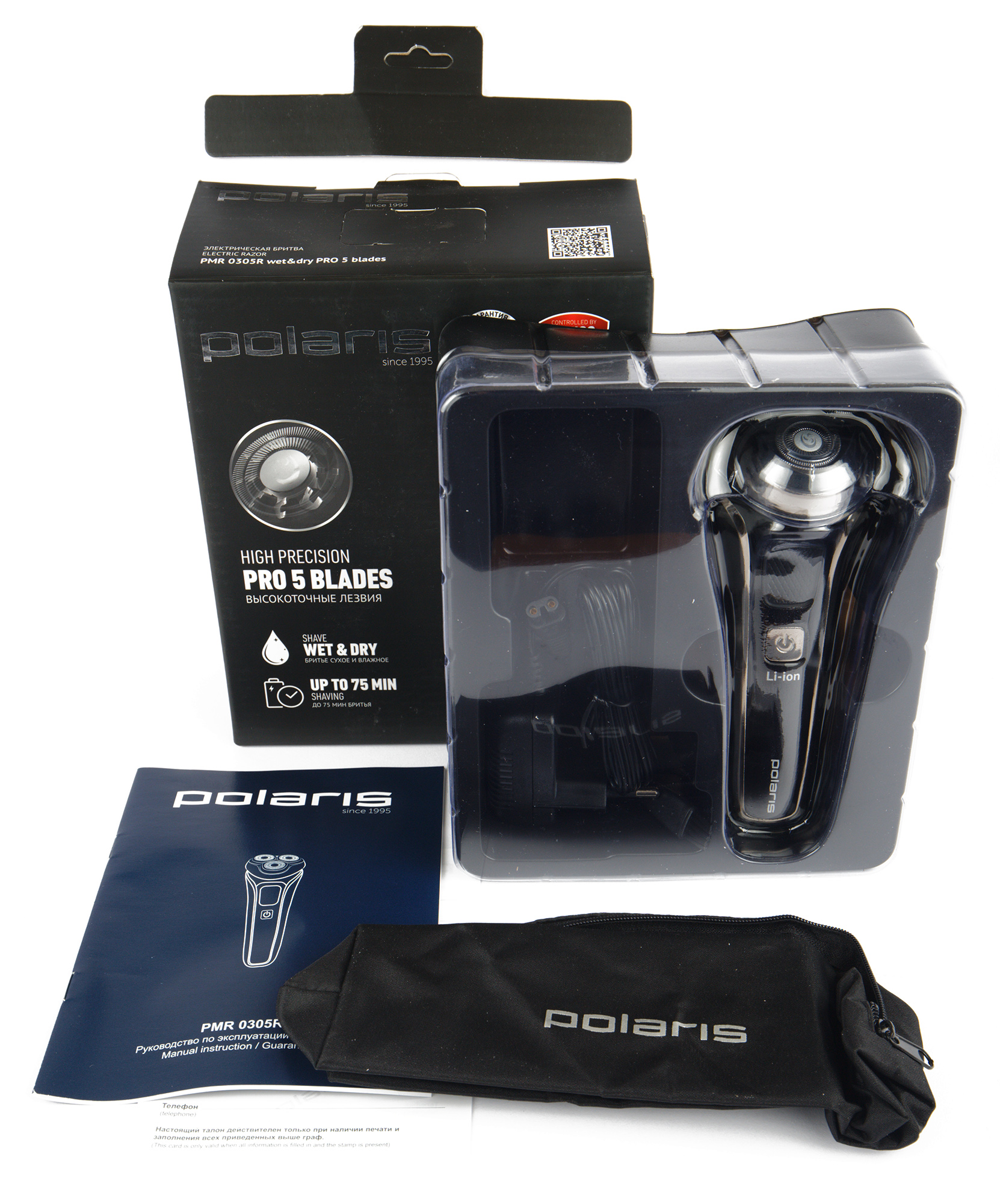 Как и у других бритв Polaris, инструкция сообщает, что «бритье будет лучшим, если кожа будет сухой», что звучит несколько странно в контексте того, что бритва подходит в том числе и для влажного бритья. Наш опыт подсказывает, что бриться лучше с пеной либо со специальным средством. Впрочем, проверим это утверждение в ходе тестирования.