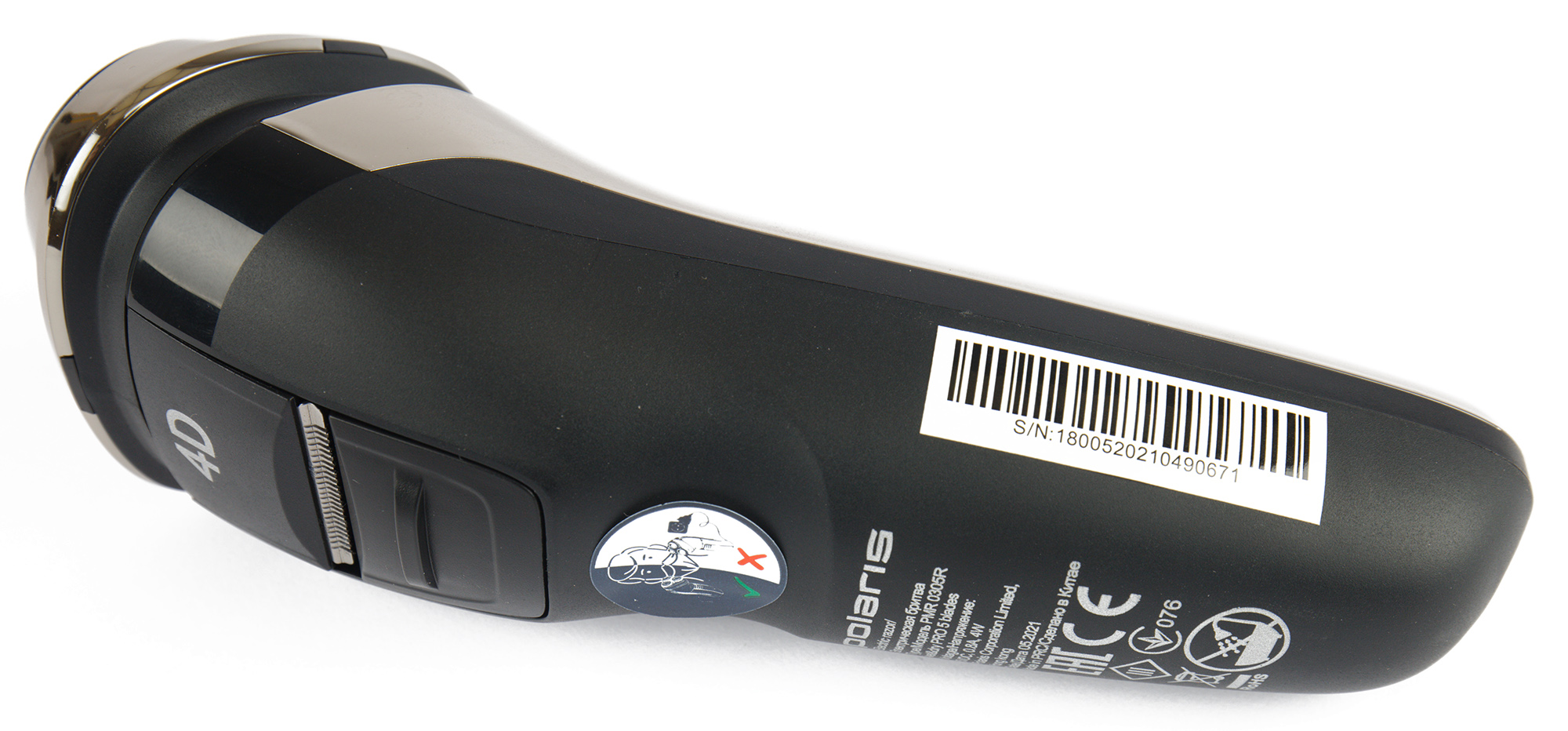 С тыльной стороны находится техническая информация и надпись 4D, свидетельствующая о том, что прибор использует «4D-систему повторения контуров лица». Мы предполагаем, что таким образом Polaris помечает бритвы с плавающими ножами и фиксированной головкой. А вот если головка будет плавающая, то это уже будет «5D-система»!