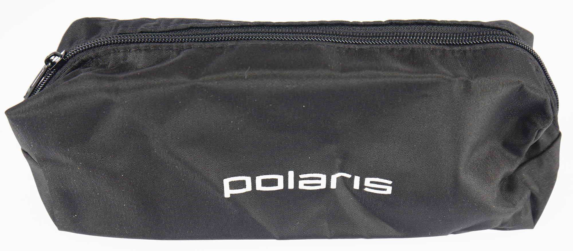 Спереди под зоной захвата расположена кнопка включения, ниже — логотип Polaris. Под логотипом (за затемненным стеклом) расположен светодиодный индикатор подключения к сети (заряда). В выключенном состоянии индикатор не виден, поскольку он прячется под пластиком.