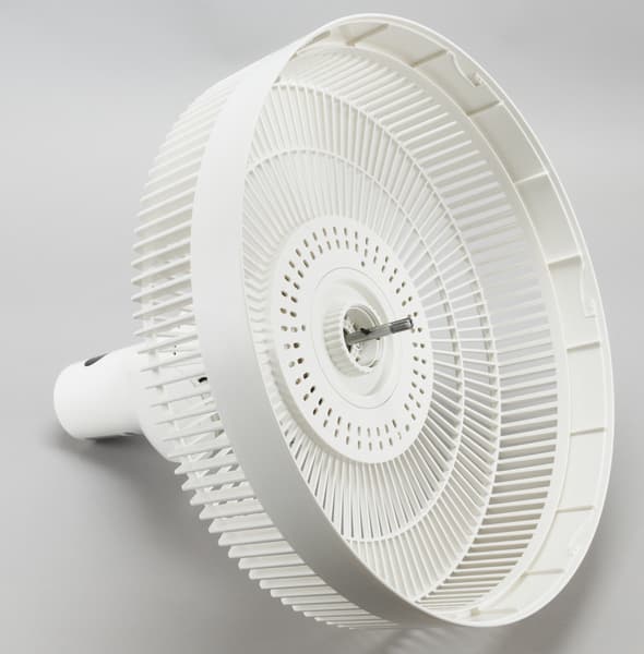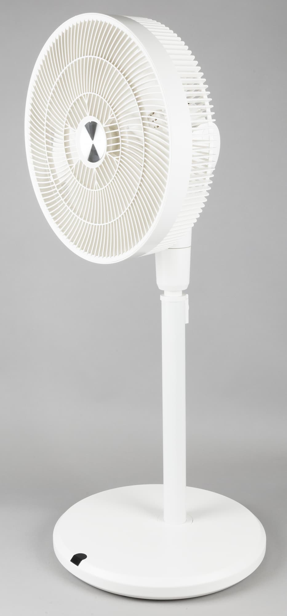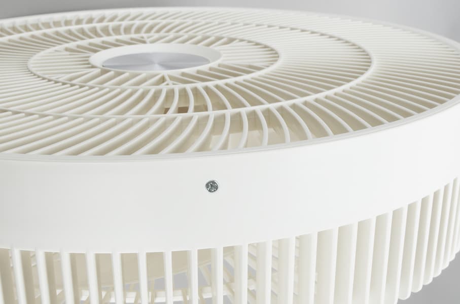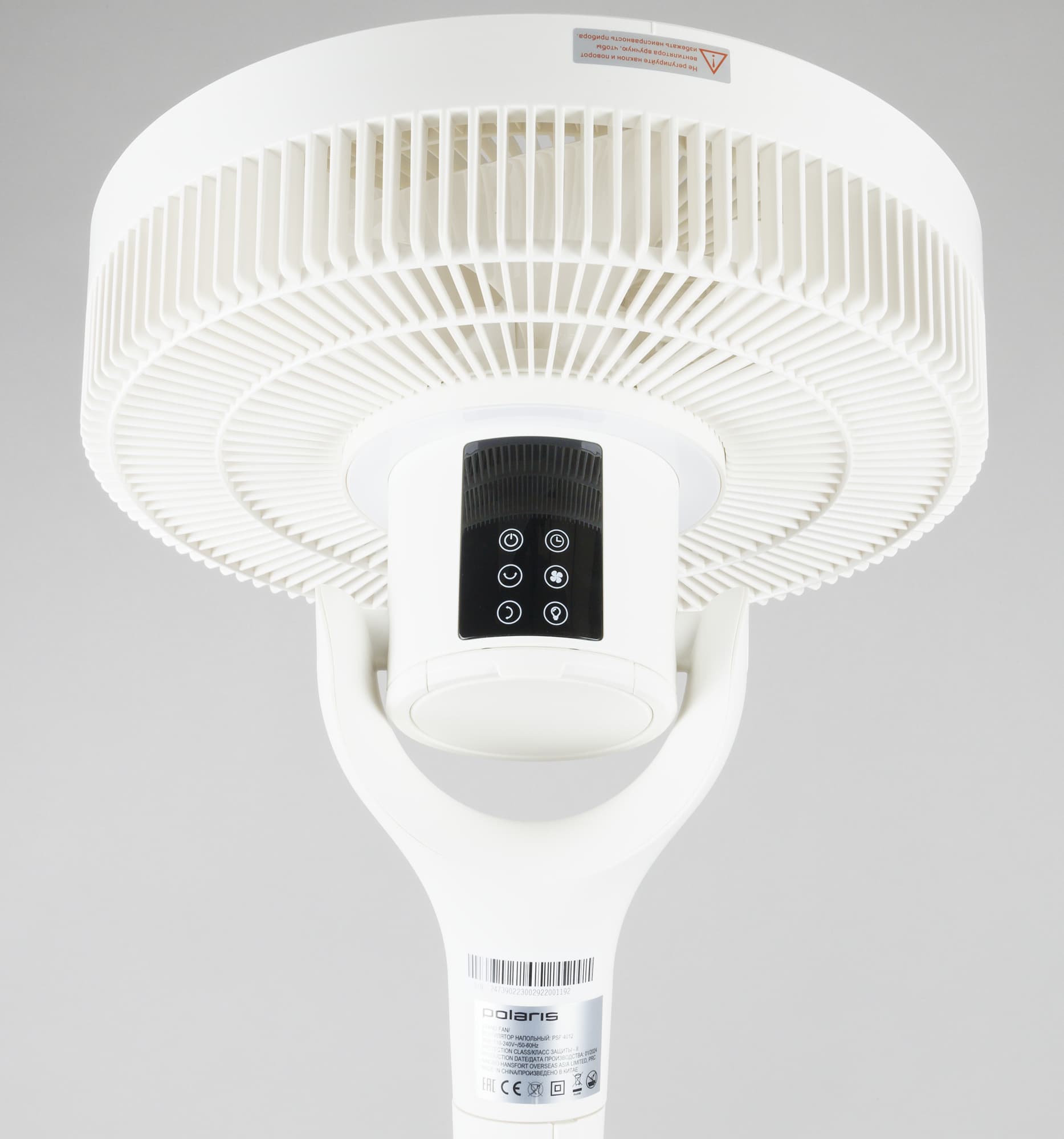 При отключении вентилятора он «паркуется», т. е. возвращается в исходное состояние — лопасти расположены перпендикулярно плоскости пола, моторный блок «смотрит» вперед.