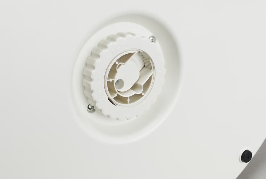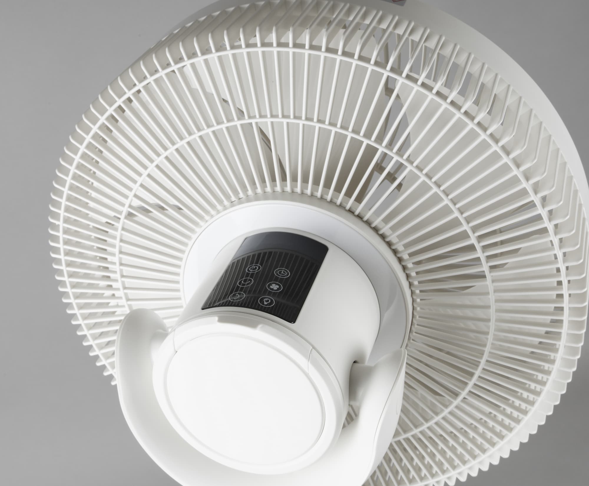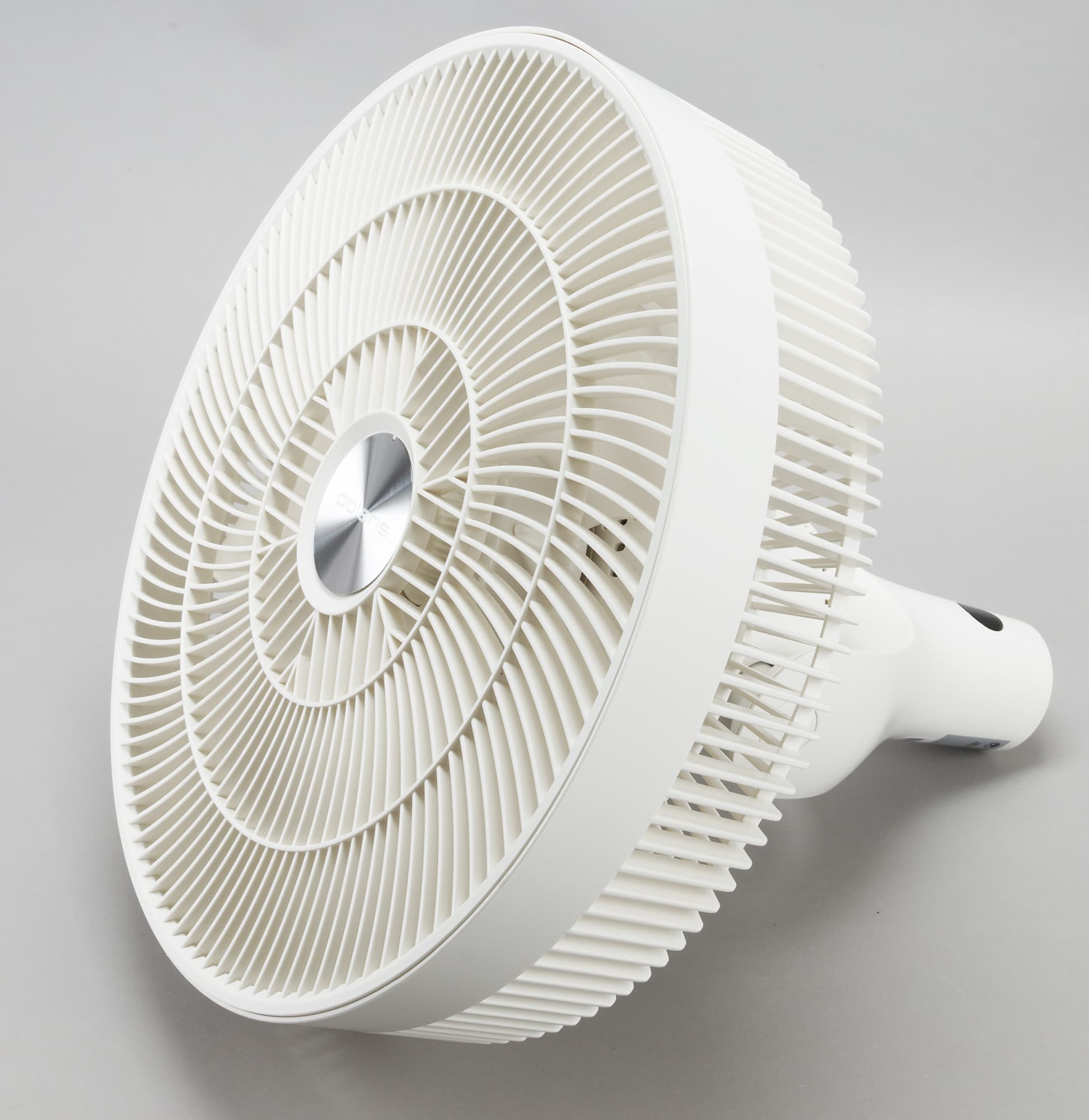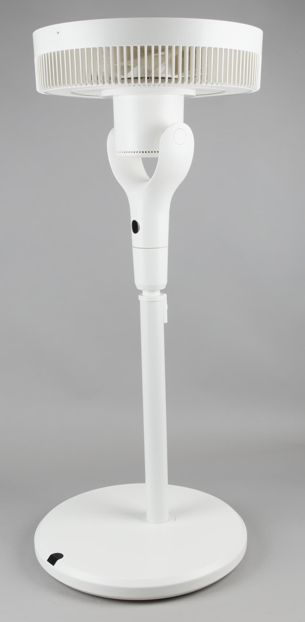 При отключении вентилятора он «паркуется», т. е. возвращается в исходное состояние — лопасти расположены перпендикулярно плоскости пола, моторный блок «смотрит» вперед.