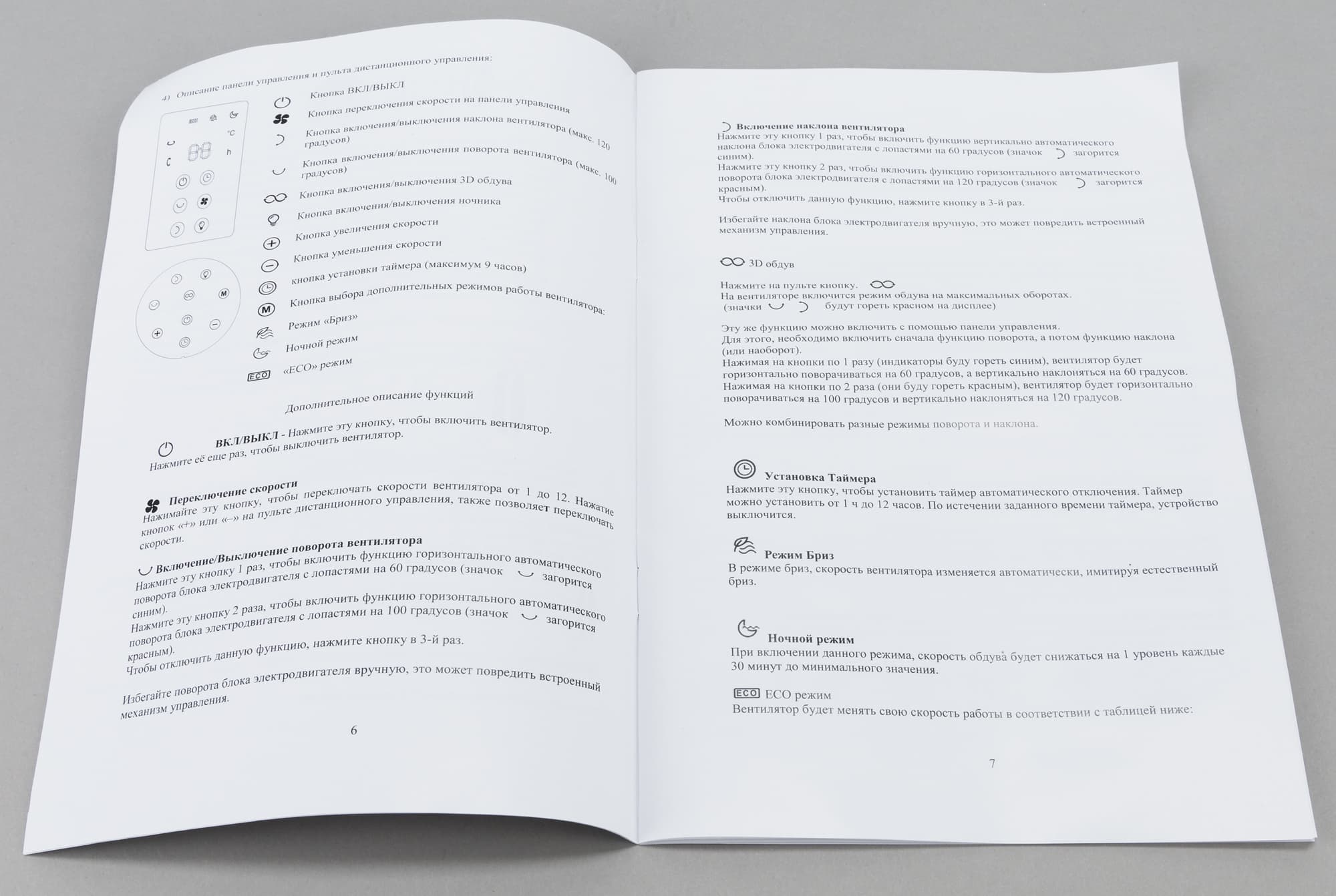 - включение и выключение наклона вентилятора (однократное нажатие — на 60 градусов, двойное — на 120 градусов, третье нажатие — выключение поворота)