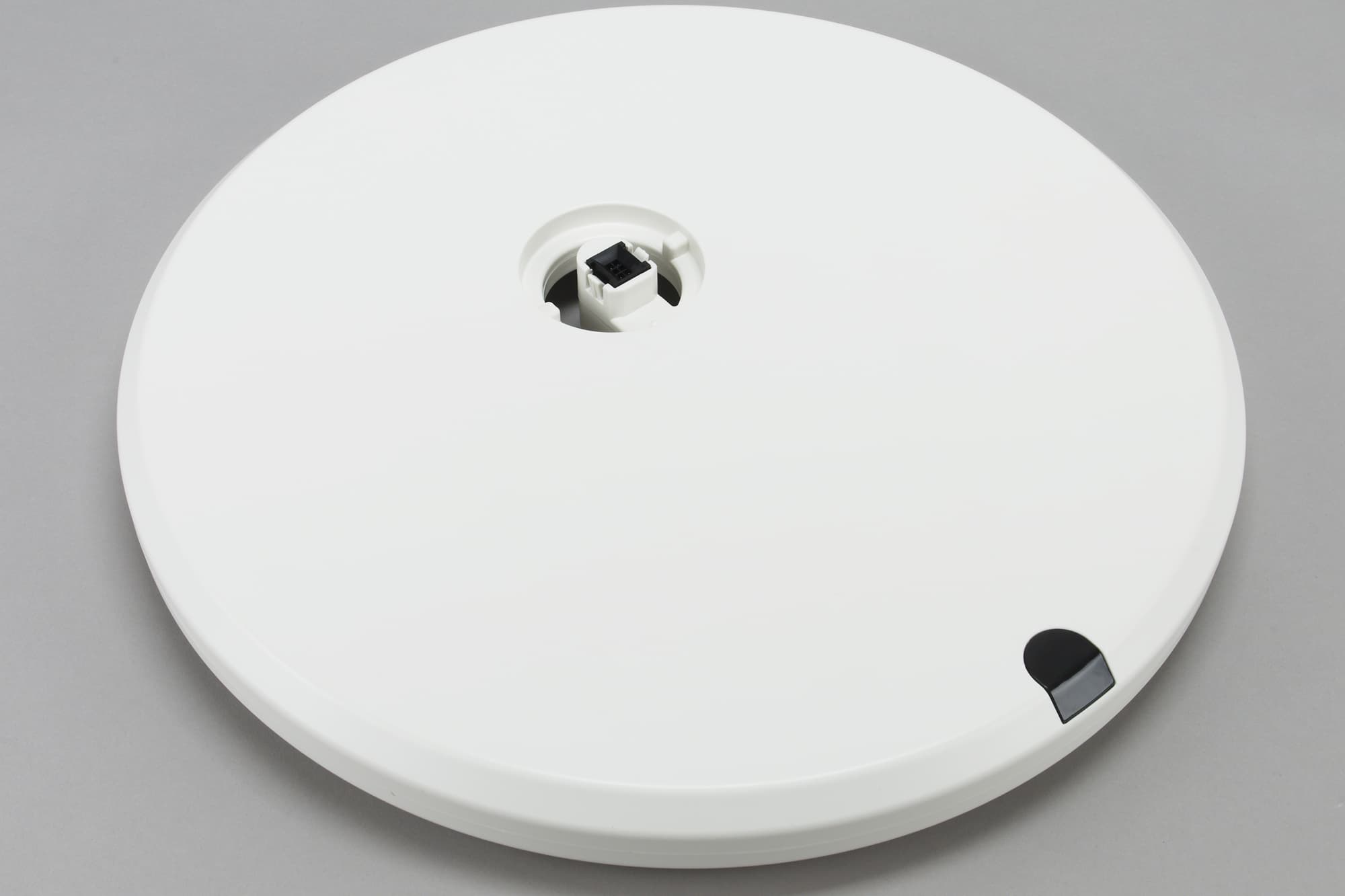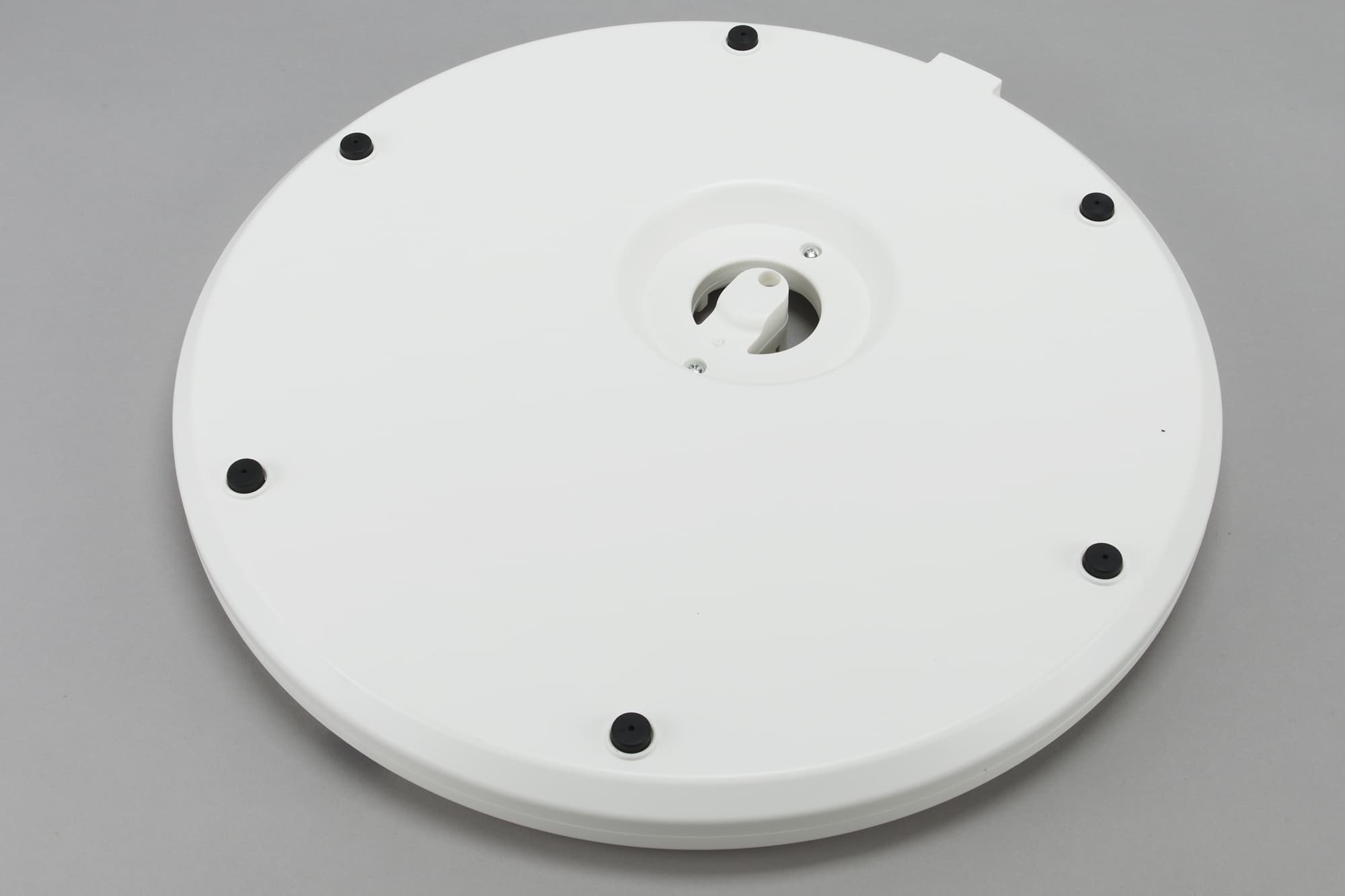 Основание (подставка) представляет собой тяжелый металлический «блин» в пластиковом корпусе. На верхней части мы видим разъем для установки центральной штанги. Спереди — инфракрасный приемник, который будет принимать сигнал с пульта дистанционного управления.