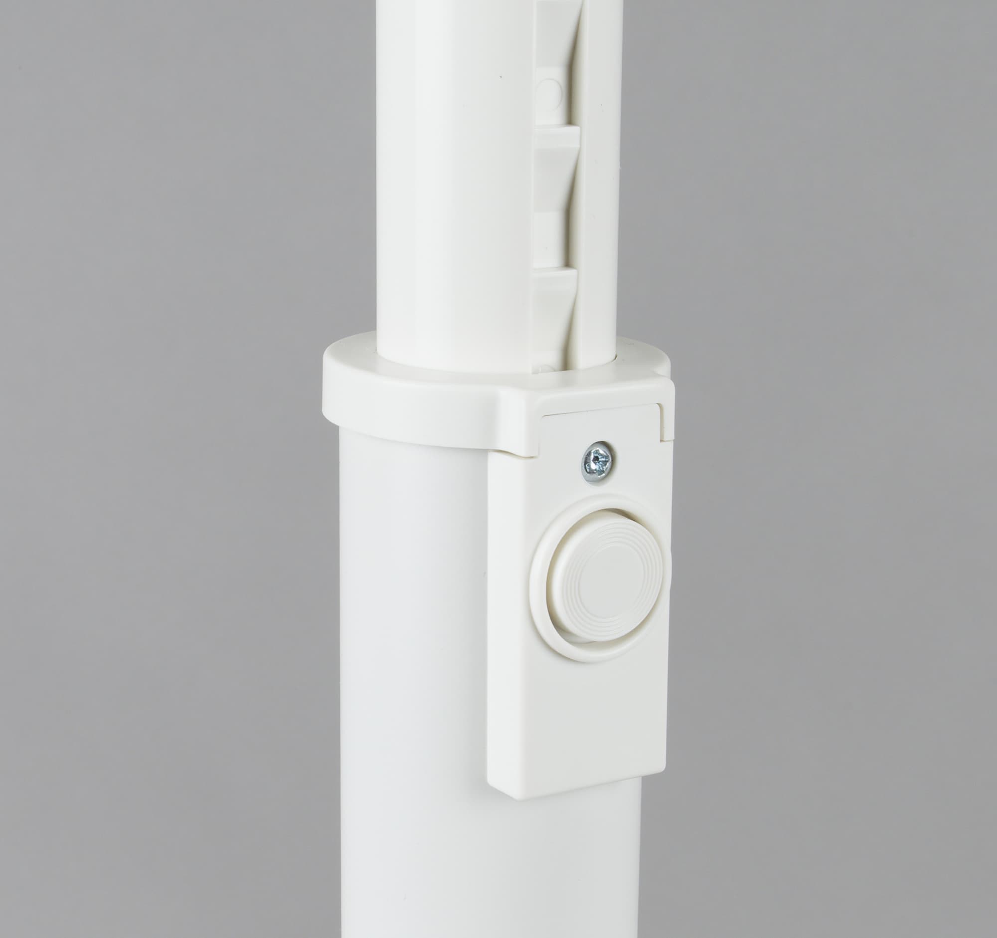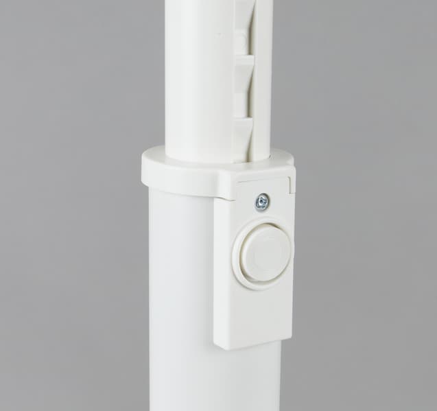Регулировка высоты осуществляется нажатием на небольшую кнопку. Внутри штанги есть пружина, поэтому складывается она вручную, а выдвигается самостоятельно, при нажатии на кнопку. При этом силы пружины не хватает на то, чтобы разложить ее полностью, так что всё равно придется помогать ей руками.