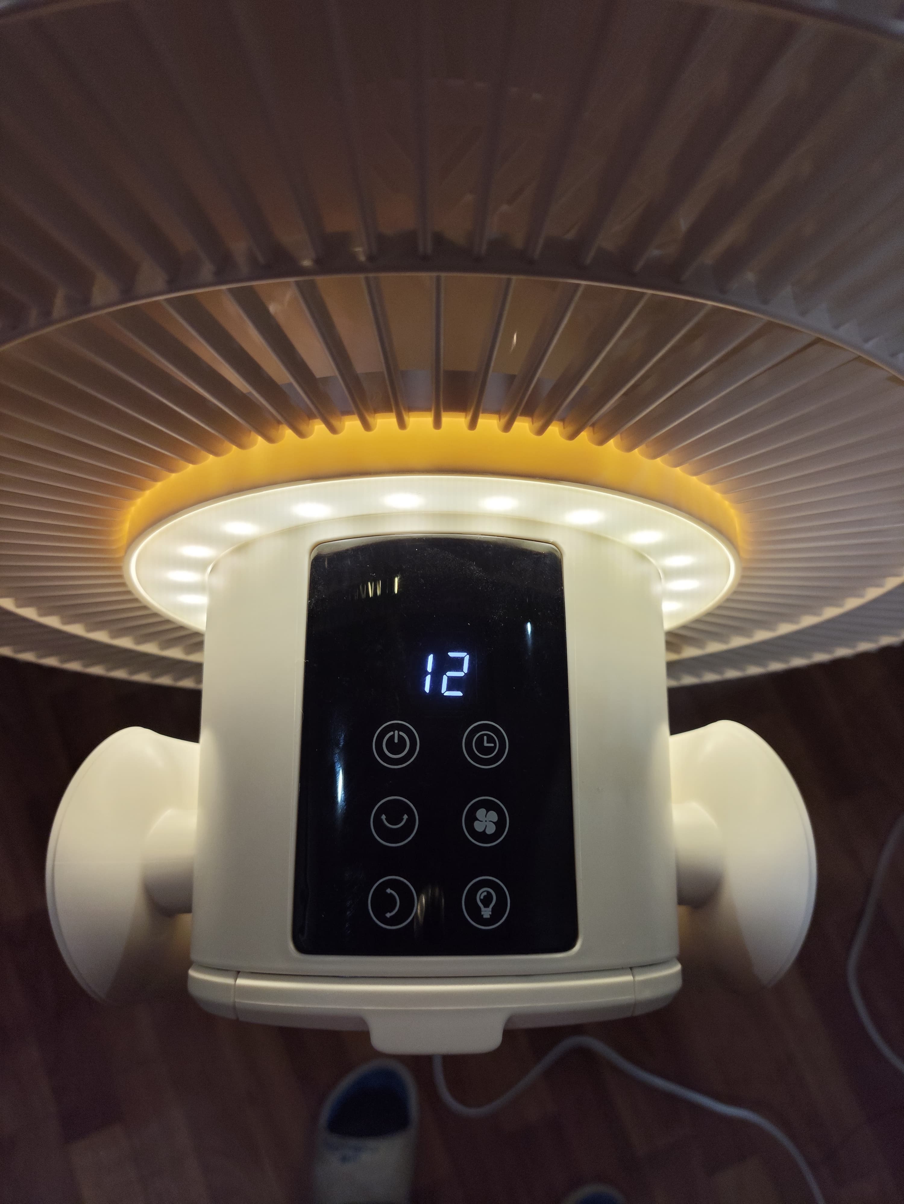 Вентилятор имеет относительно невысокую мощность (до 35 Вт), чего, впрочем, оказалось вполне достаточно для домашнего использования. Ну а благодаря 12 режимам всегда можно подобрать наиболее подходящую скорость вращения лопастей.