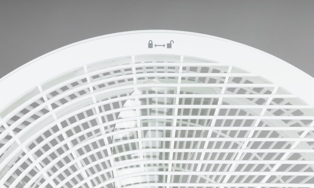 После сборки первым делом стоит проверить, что половинки основания надежно соединены, и установить его на ровную поверхность. Затем уже можно вкрутить в него первую деталь пластиковой трубки-ножки и добавить при необходимости вторую и третью (или убрать их на хранение обратно в основание, чтобы тем самым сэкономить место и всегда знать, где они спрятаны). При длительной эксплуатации стоит время от времени проверять, насколько крепко они держатся, так как перестановка вентилятора с места на место и функция автоматического вращения могут постепенно ослаблять степень закручивания.