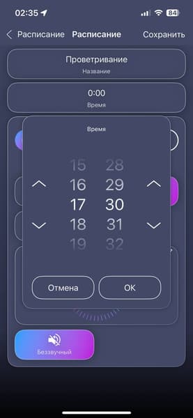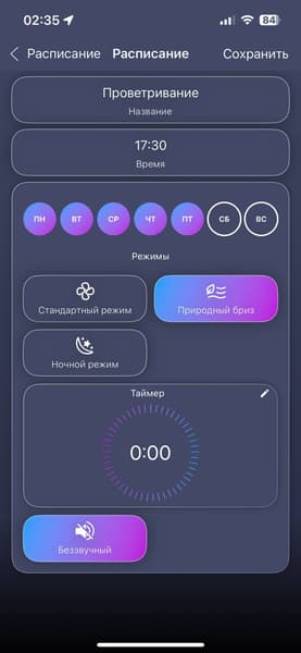 Для изменения скоростей работы и установки таймера потребуется всего лишь смахнуть бегунки пальцами. Прочим функции можно активировать касанием.
